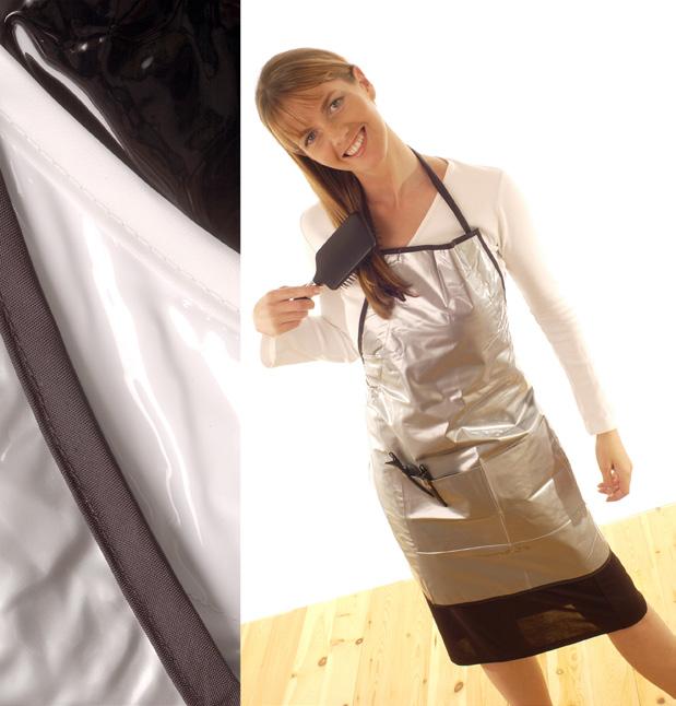 Stylish tinting apron with two front pockets and adjustable ties. Water and tint repellent. Available in two colours.