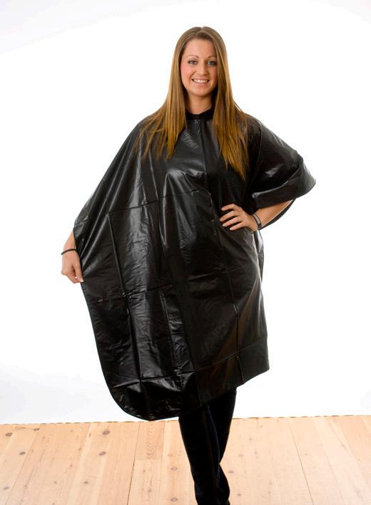 Tint-proof/ water-proof gown made from PVC and Polyester. Press stud fastening that adjusts to fit all. Available in Black.