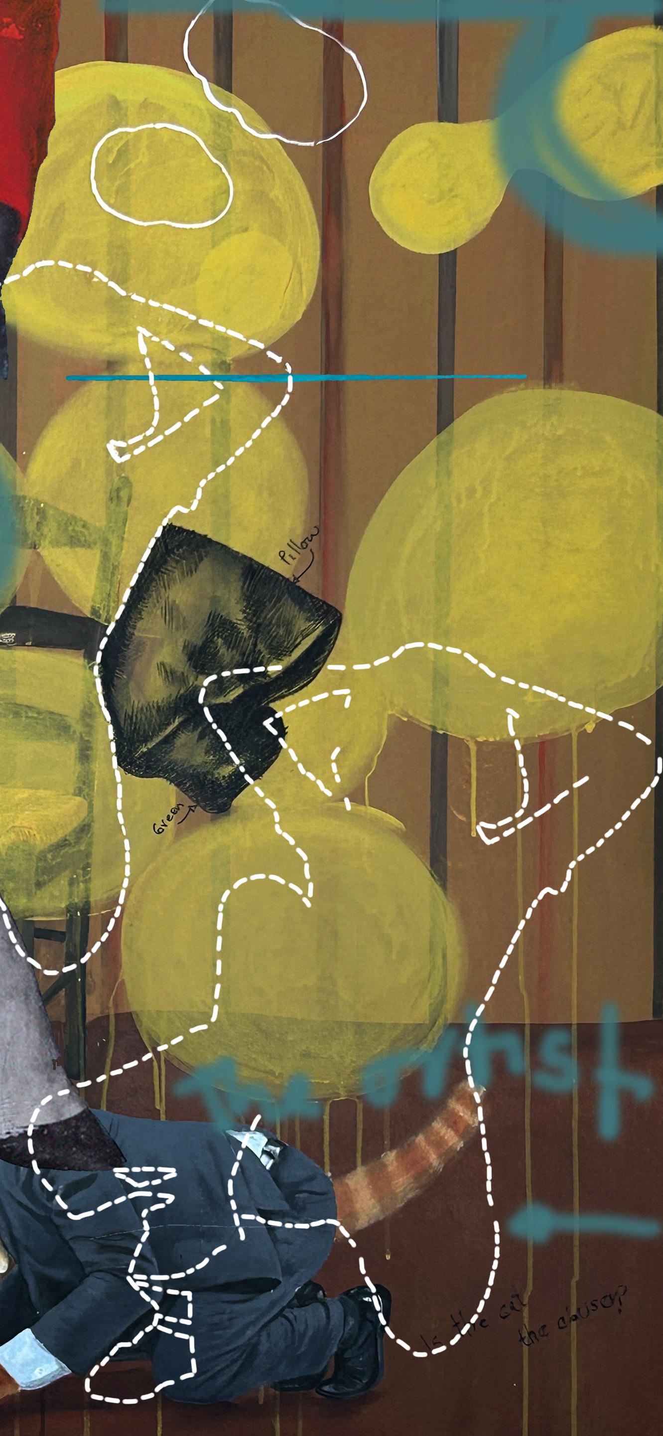 The Body in Question Oil/acrylic/transfers/markers/canvas 48 x 60 inches 2023