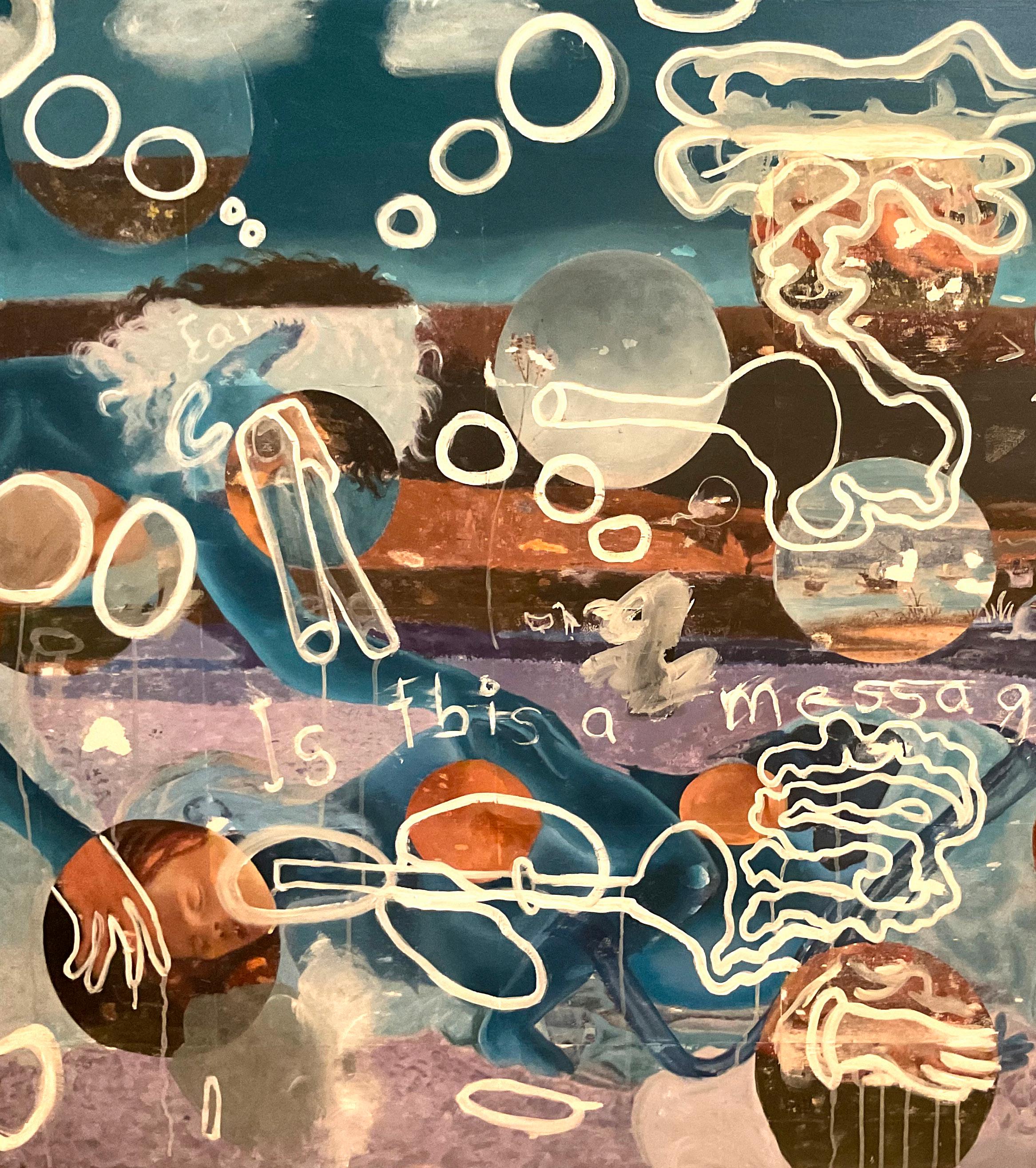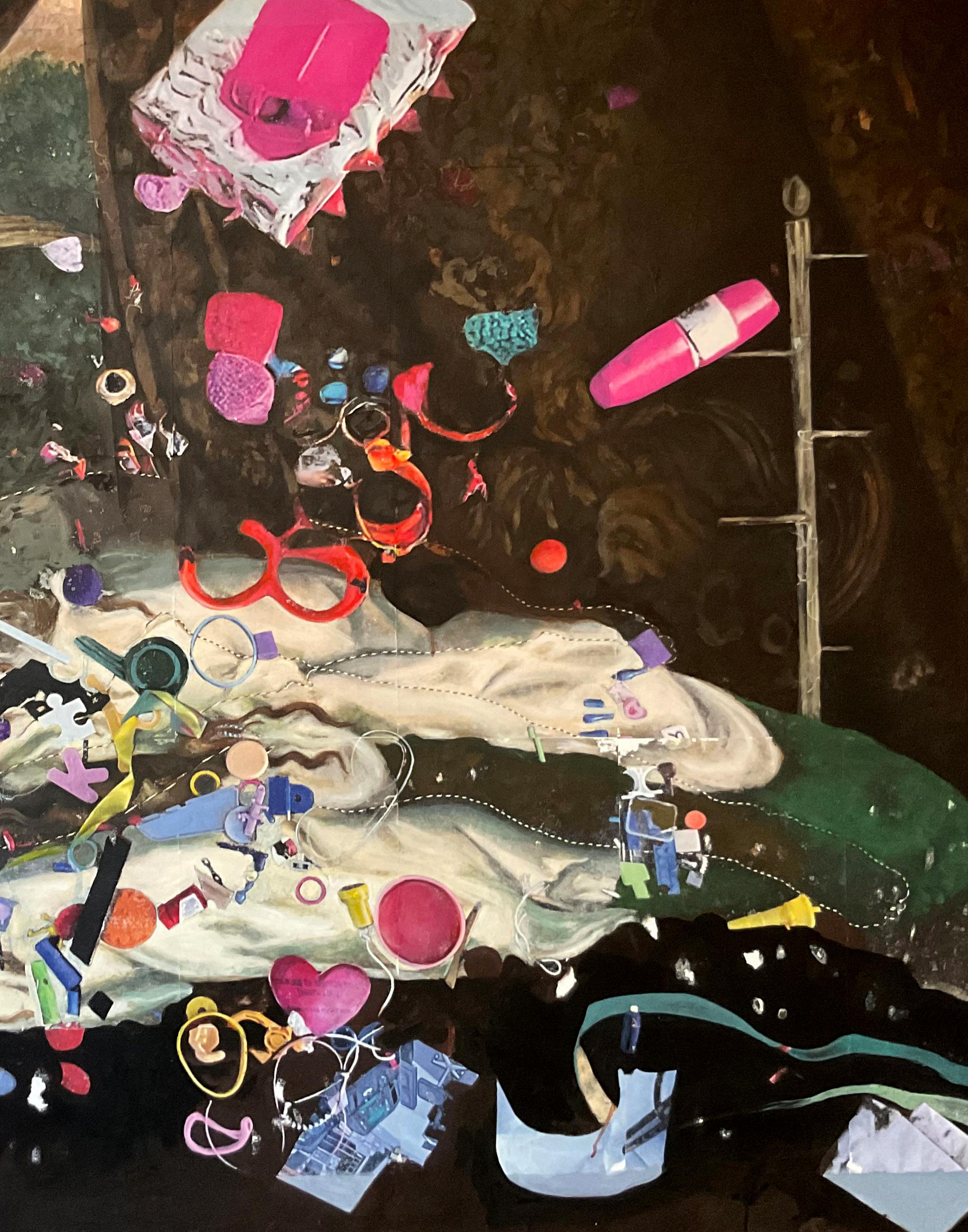 The Body in Question Oil/acrylic/transfers/markers/canvas 48 x 60 inches 2023