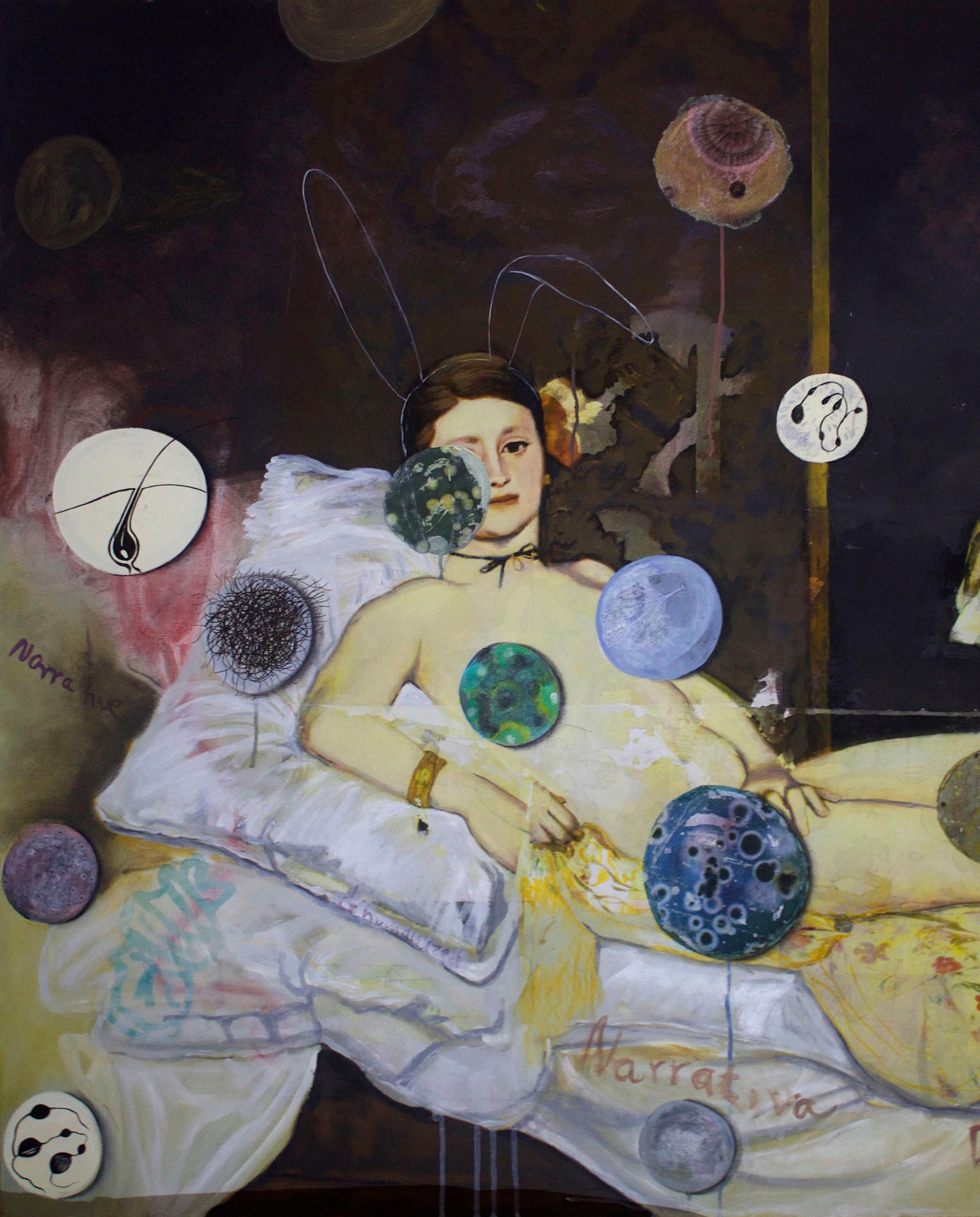 Venus and the Message She Promotes Oil/acrylic/transfers/markers/canvas