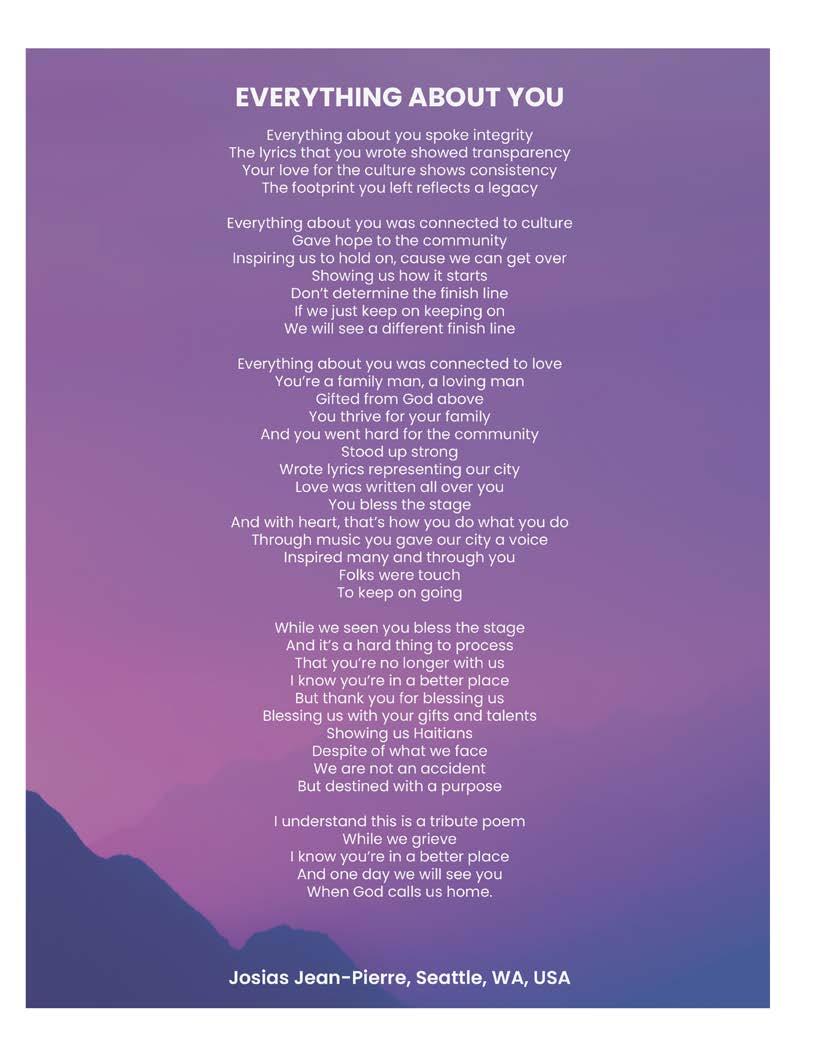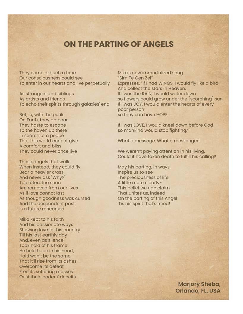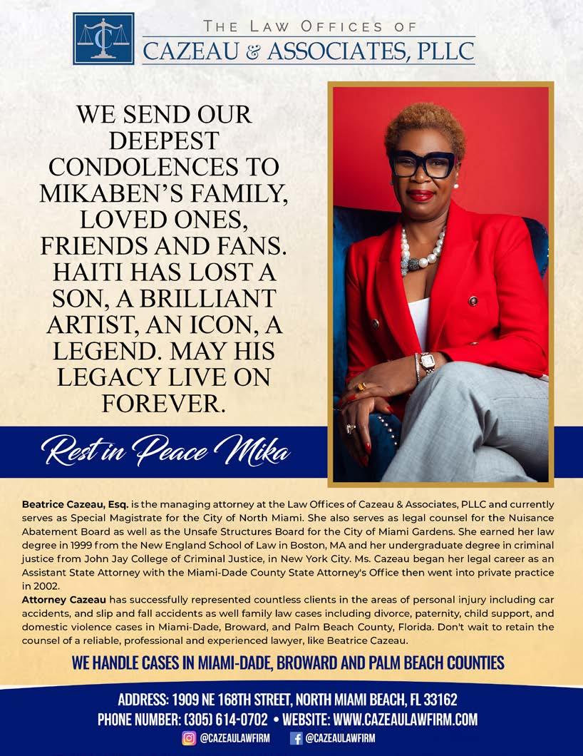 "Mikaben had music in his DNA. He also was pure love. He loved love, giving love, spreading love, sharing love, teaching love." Karoll-Ann “Kouka” Fanfan