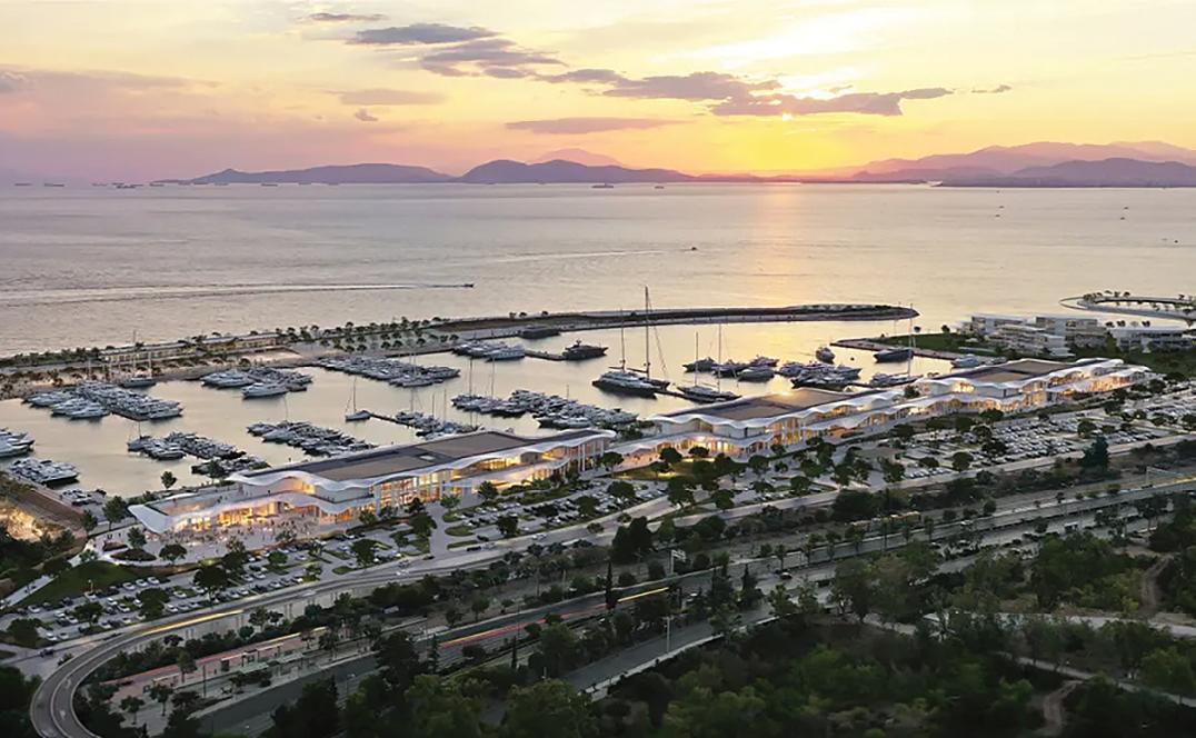 It comes equipped with two helipads, an infinity Jacuzzi and a shell door that opens at sea level for lounging.