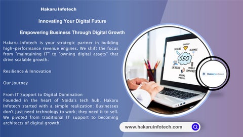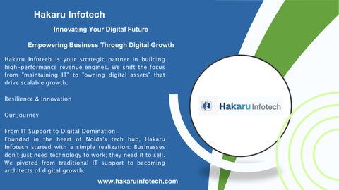 Hakaru Infotech is your strategic partner in building high-performance revenue engines. We shift the focus from "maintaining IT" to "owning digital assets" that drive scalable growth.