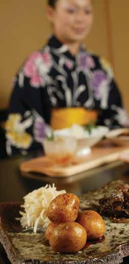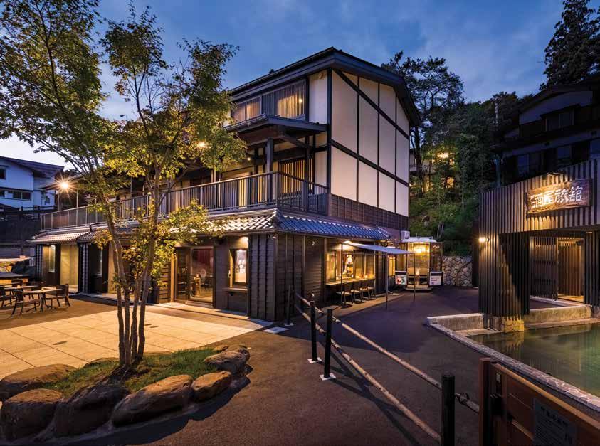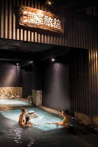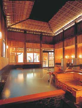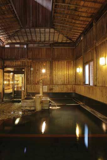 This bathhouse, situated in the basement below the Yokochi tra c lights with the stone wall serving as a landmark, o ers water with special health benefits.