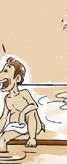 Although the water flowing from the lion's mouth appears clear and colorless, the water in the bathtub has a slightly milky appearance.