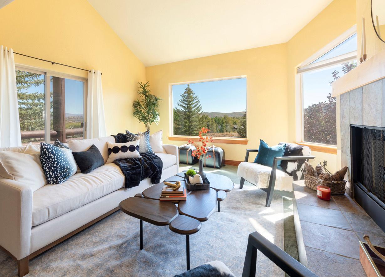 Inside, you’ll find an open and inviting floor plan with generous living spaces, high ceilings, and large windows that frame the surrounding natural beauty. A warm fireplace anchors the great room, creating a cozy gathering spot after a day on the slopes or exploring the nearby trails. The kitchen and dining areas are ideal for entertaining, while the four spacious bedrooms and three bathrooms provide comfort and privacy for family and guests.