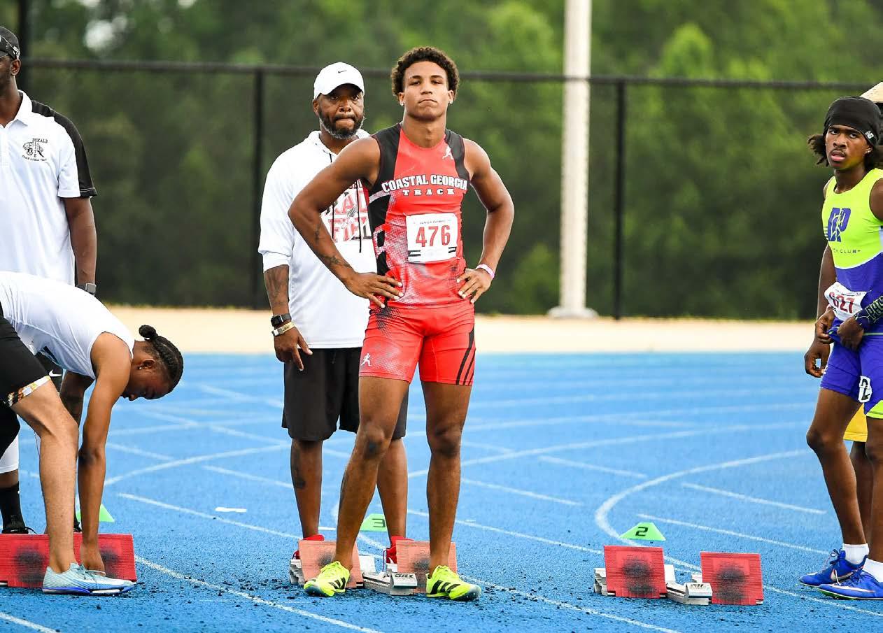 Isaiah and Belinda Taylor have coached Joshua on the Coastal Georgia Track Team since he was 9 years old. “He is a very efficient hurdler,” Isaiah said. “What makes him special is his speed between the hurdles, and his athleticism allows him the ability to snap his trail leg down faster than his competitors.”