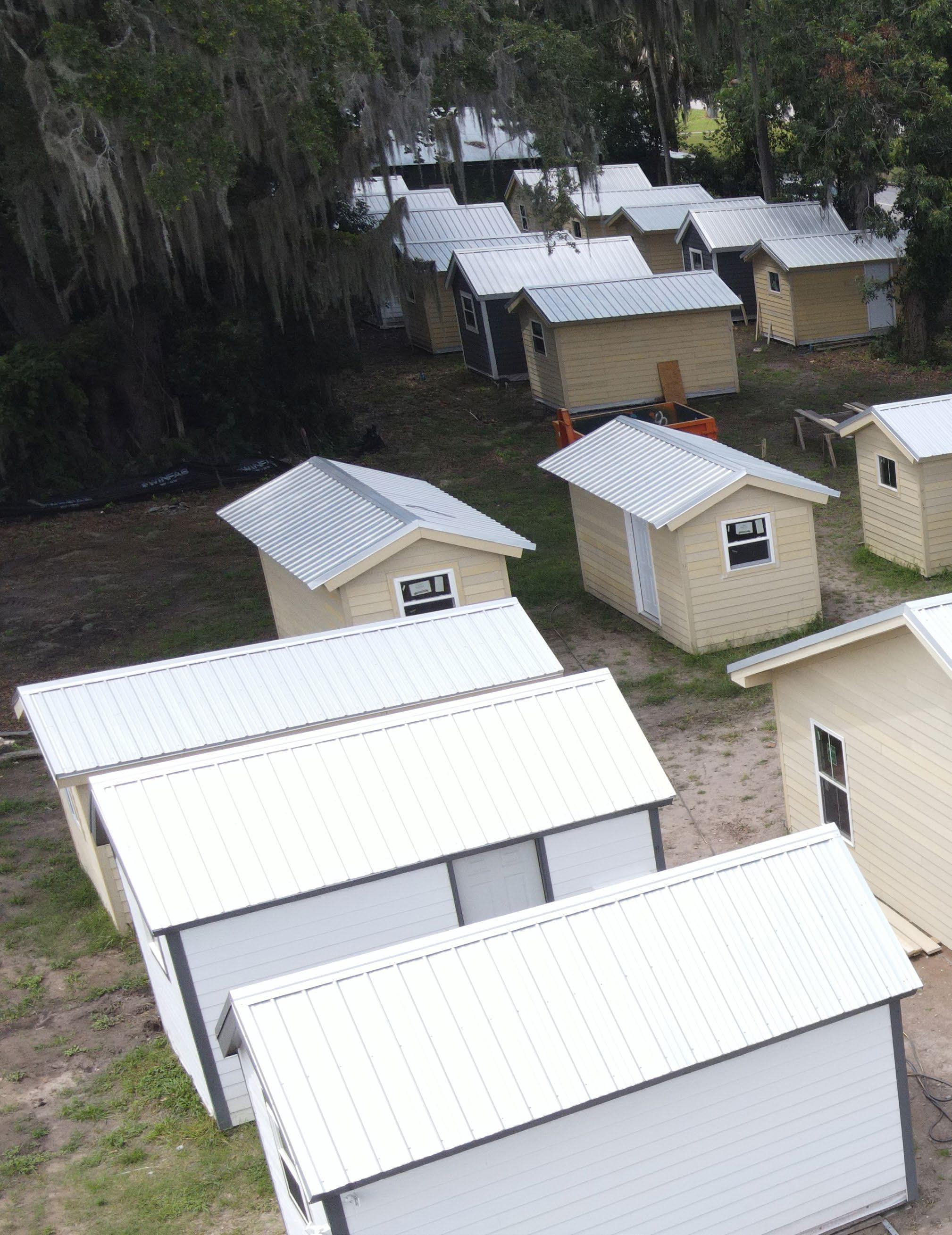 Currently, 30 tiny homes and a large community center are erected in Brunswick, and work has begun on the interior –plumbing, electrical outlets and interior finishings. Each tiny home will be equipped with a full bathroom, bed area and kitchenette which includes an induction cooktop, microwave, crock-pot, refrigerator/freezer and kitchen supplies.