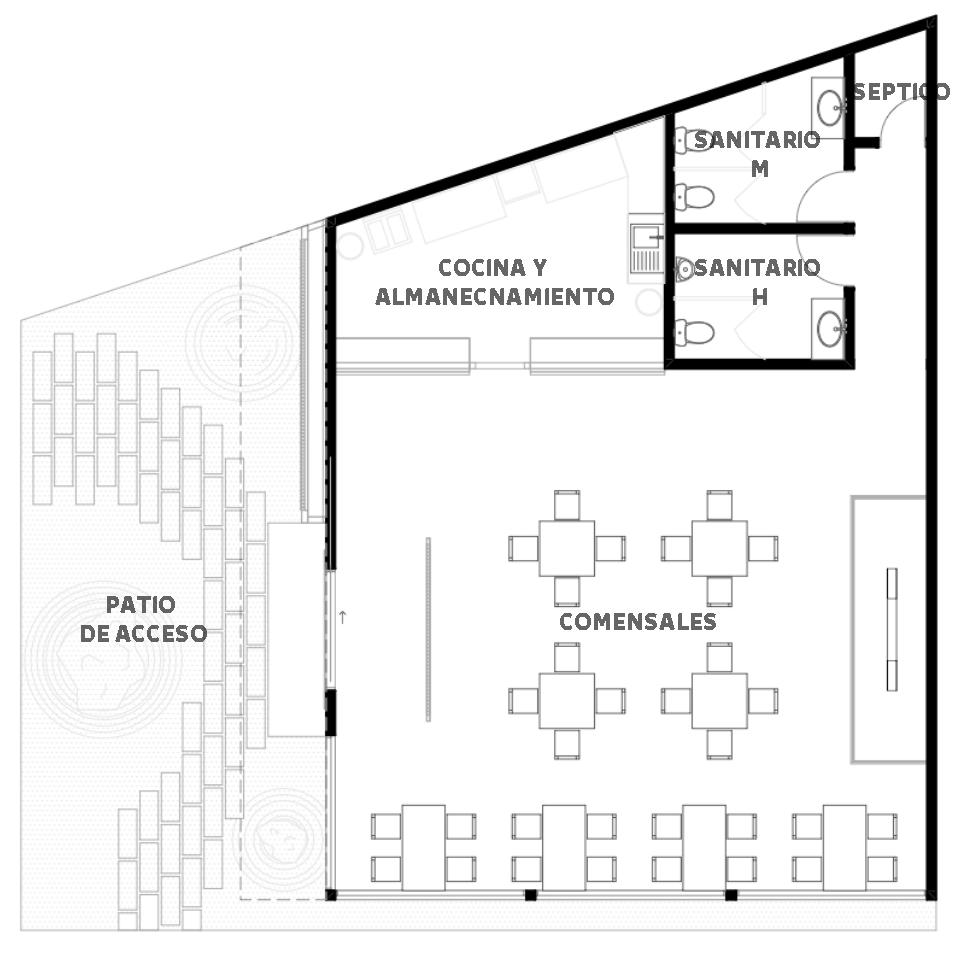 HOMBRES JARDIN VACIO COCINA VACIO REJA REJA W.C MUJERES MESA REFRIGERADA FREIDORA MESA DE PREPARACIÓN ESTUFA CAMPANA TARJA 2 GRILL MESA DE PREPARACIÓN MESA DE PREPARACIÓN REFRIGERADOR NEGRO BARRA DE GRANITO TARJA RACK CHICO RACK MEDIANO VACIO SUBE junta constructiva 3cm junta constructiva 3cm B.A.P. B.A.P. BAJA 1.50x1.20 baño proyección de domo ALMACEN ALMACEN ALMACEN LOSA VACIO VACIO 1 2 3 4 5 6 7 8 9 10 11 12