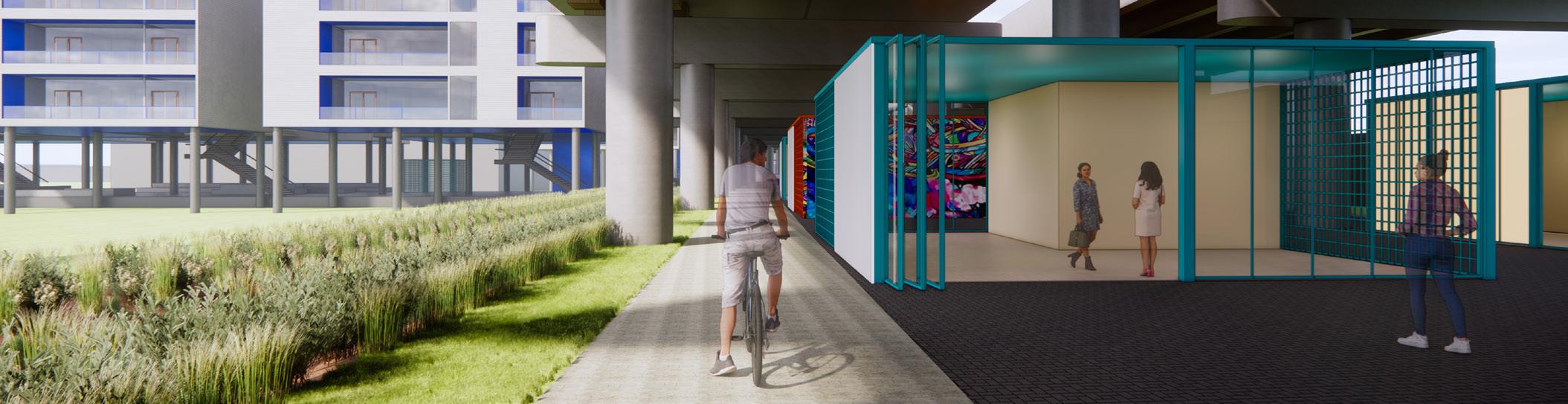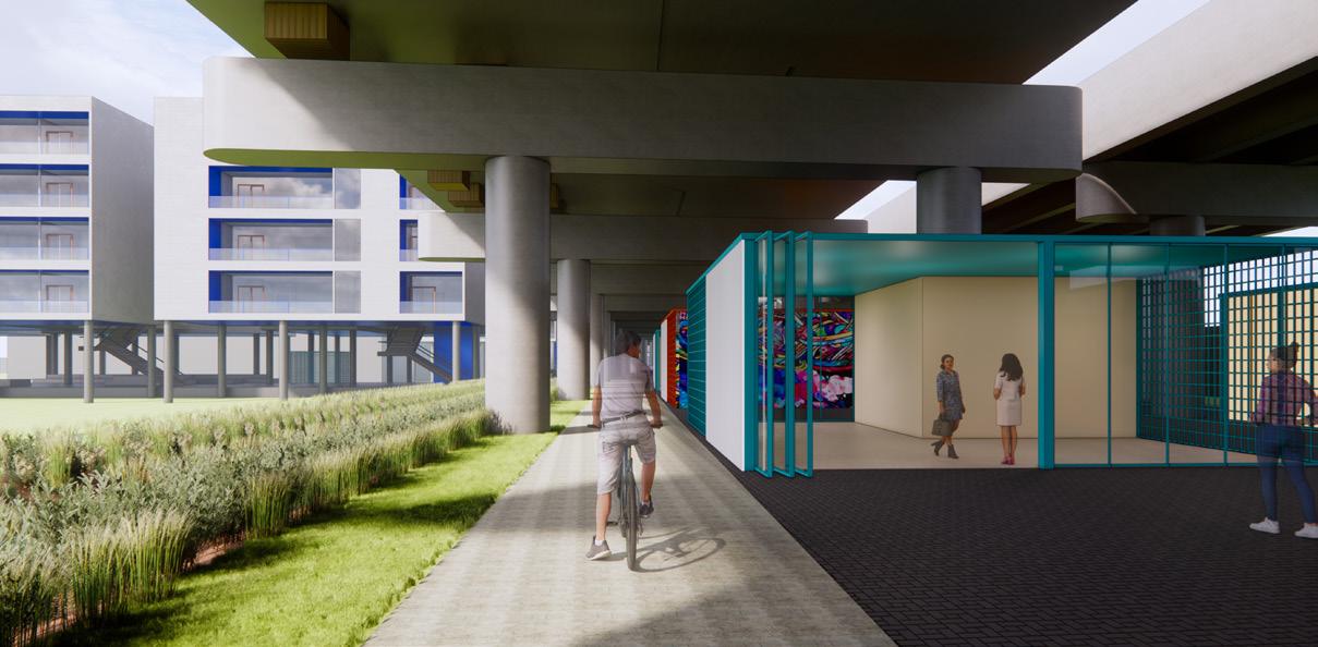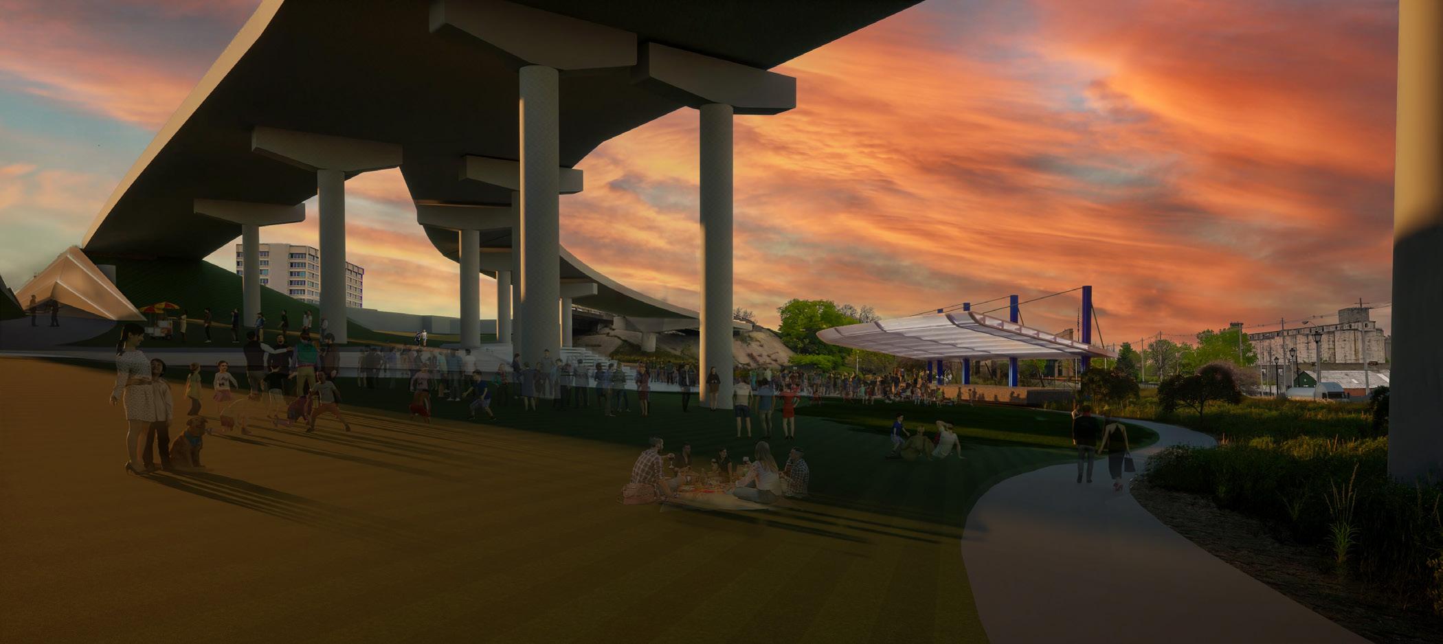 The re-development aimed to rejuvenate the area by re-establishing its connections to its natural, cultural, and economic assets, all while preserving and enhancing its unique urban identity. The further hope of the design investigation is to promote the possibilities of innovative change within the community. 1-70 to KCK Junction Outdoor Development
