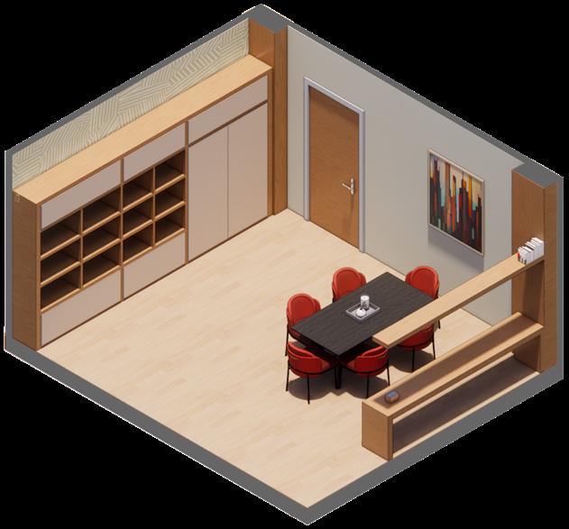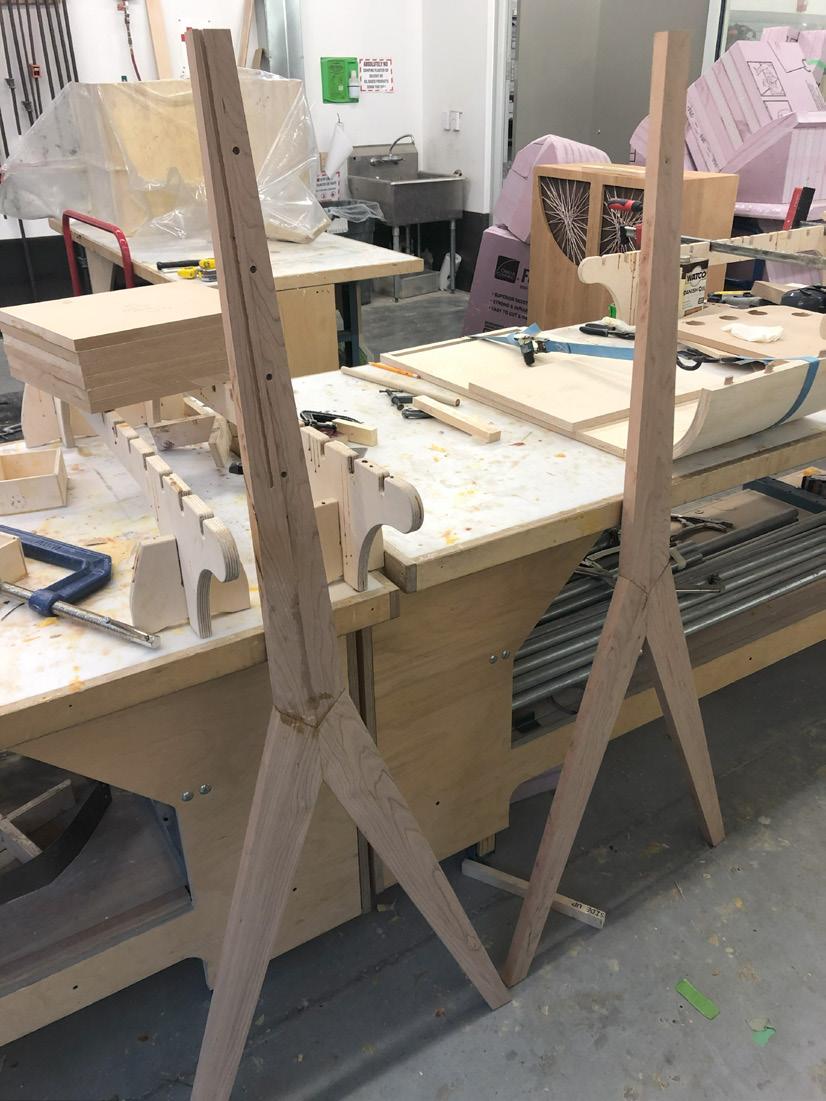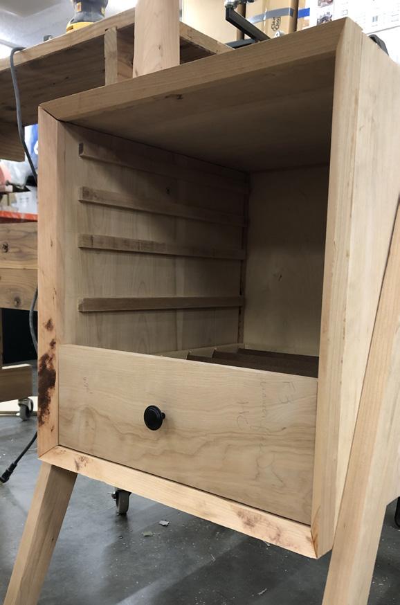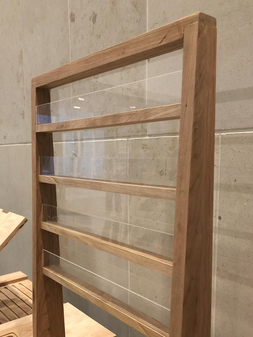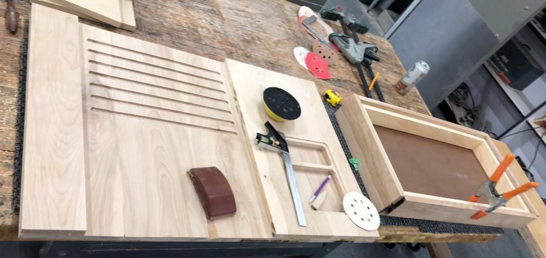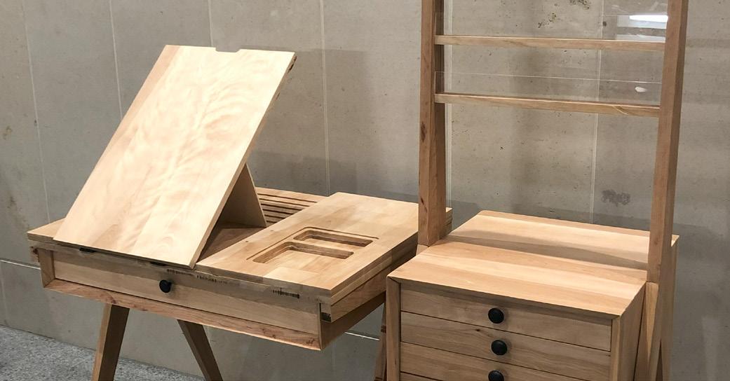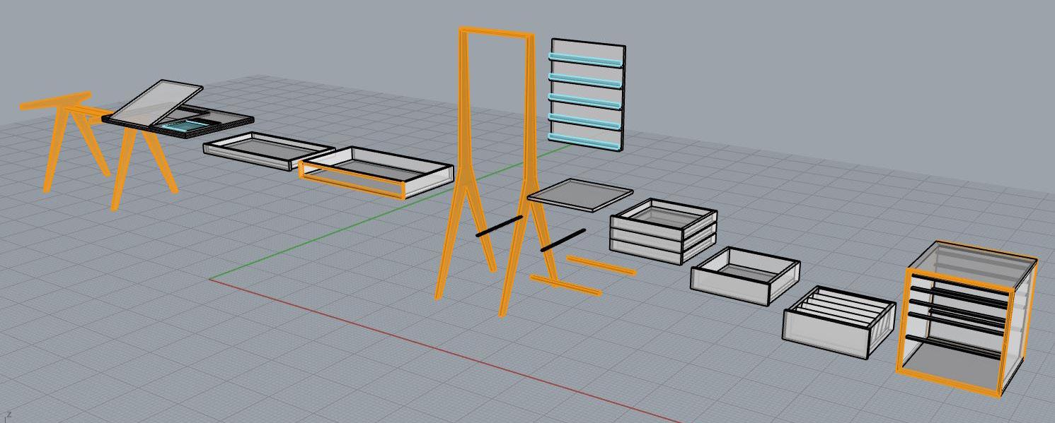 The process of this project included significant 3D modeling as well as CNC cutting in order to create more complex details. As the collection is completely made of wood, advanced joinery and connection systems were used to create seamless lines and unique angles. Custom drawer and easel elements were also designed to meet the function and storage needs of the project.