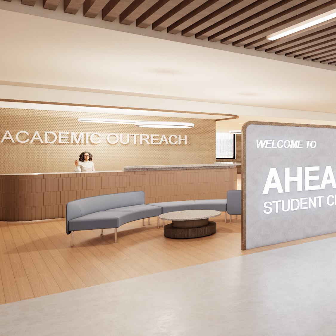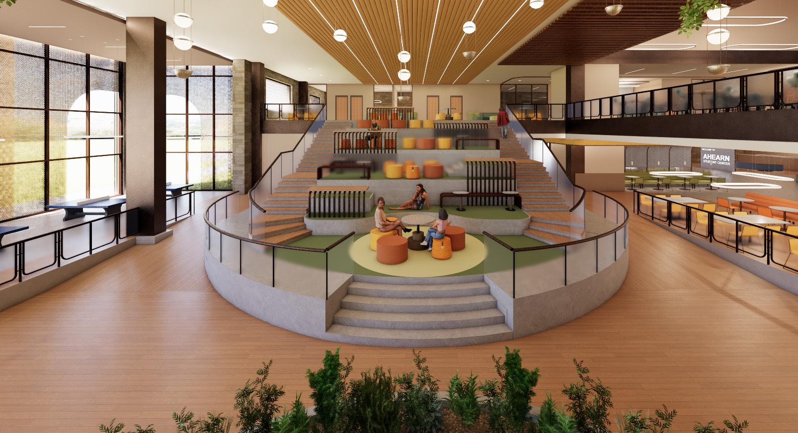 The hope for this project was to utilize the renovation of Ahearn Fieldhouse in order to create a student services center which is focused on supporting students’ overall health and wellbeing. The goal is to provide a centralized location for all academic and financial services, while also creating a new space to nourish and support them physically, mentally and socially. By creating a location which is inclusive, innovative and
