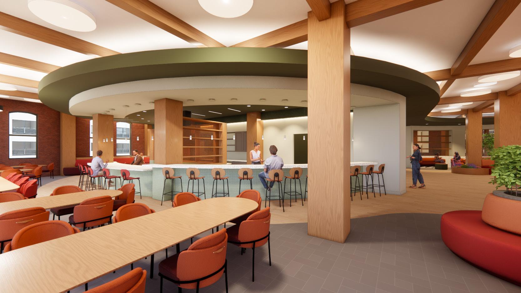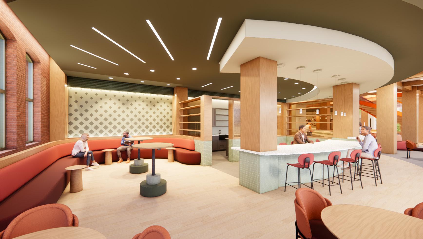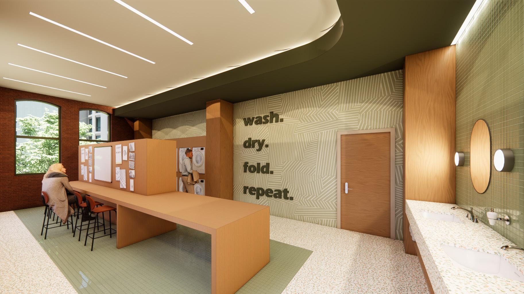 The communal floor integrates a variety of active and social spaces, hoping to provide residents with a “third place” type of atmosphere. The design strives to energize and engage residents, encouraging them to interact with one another frequently, and establish connections for mutual support.