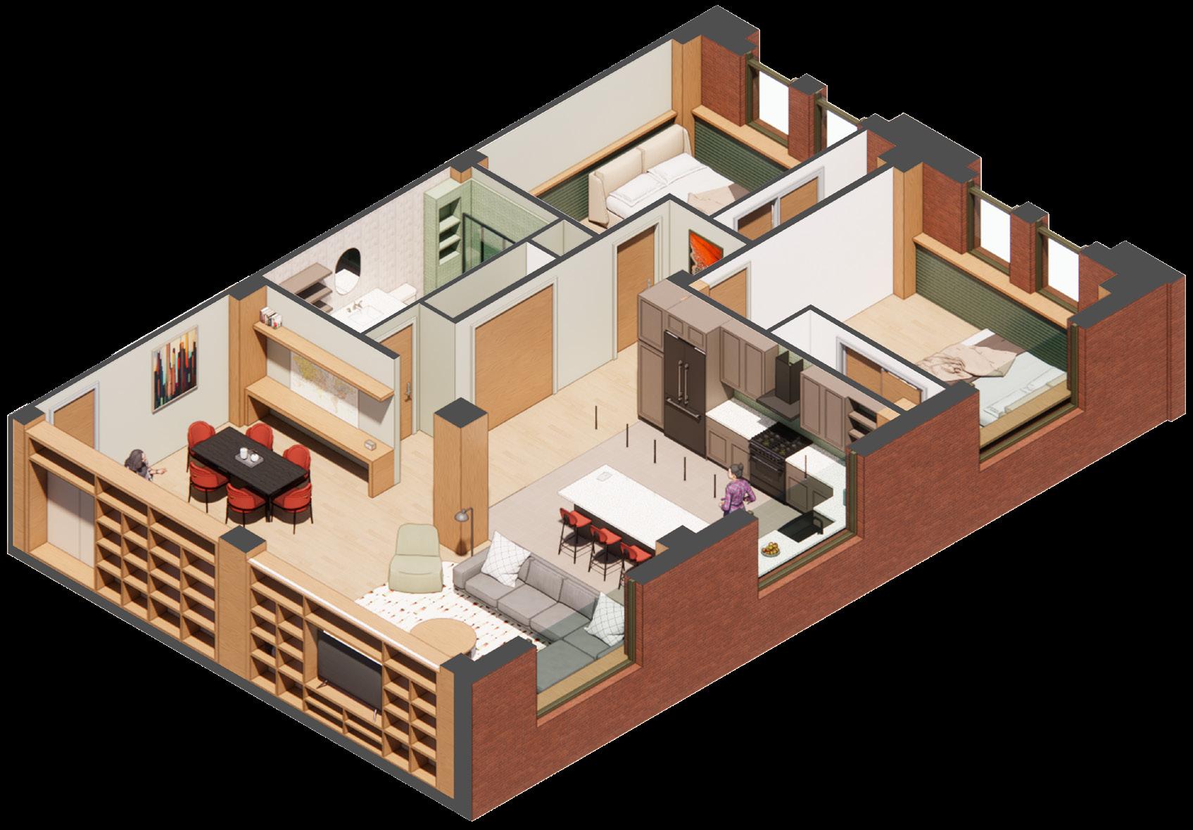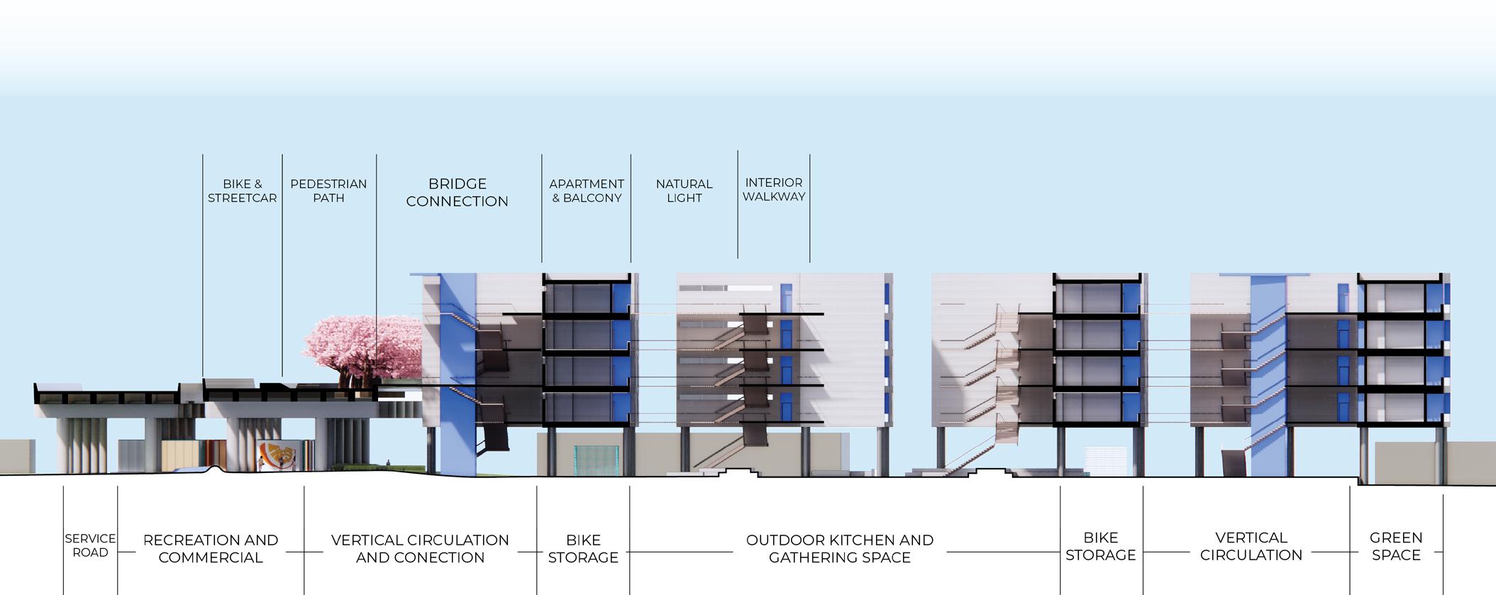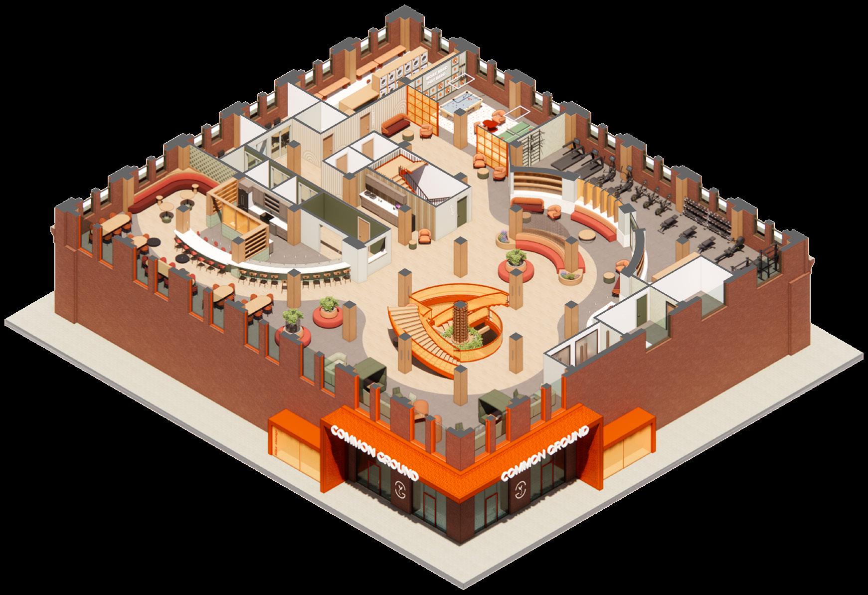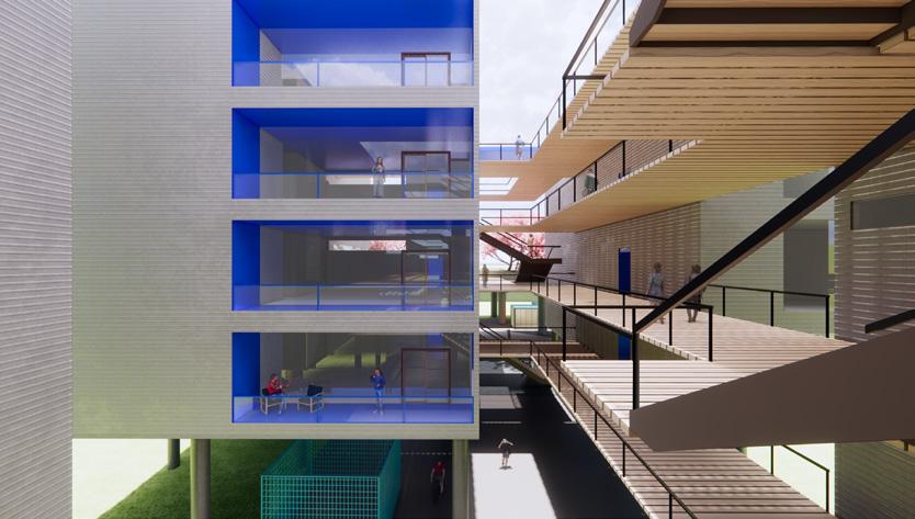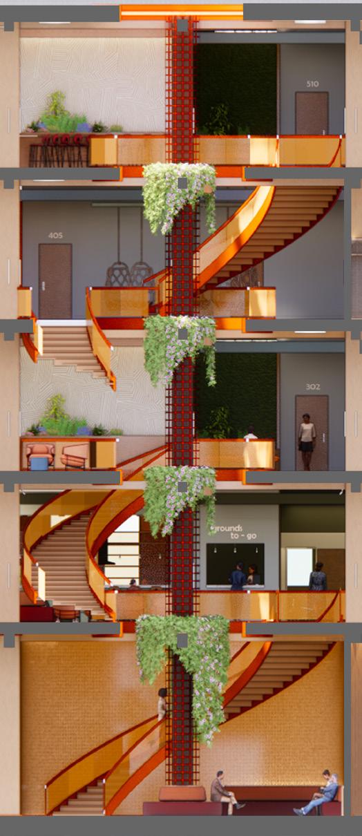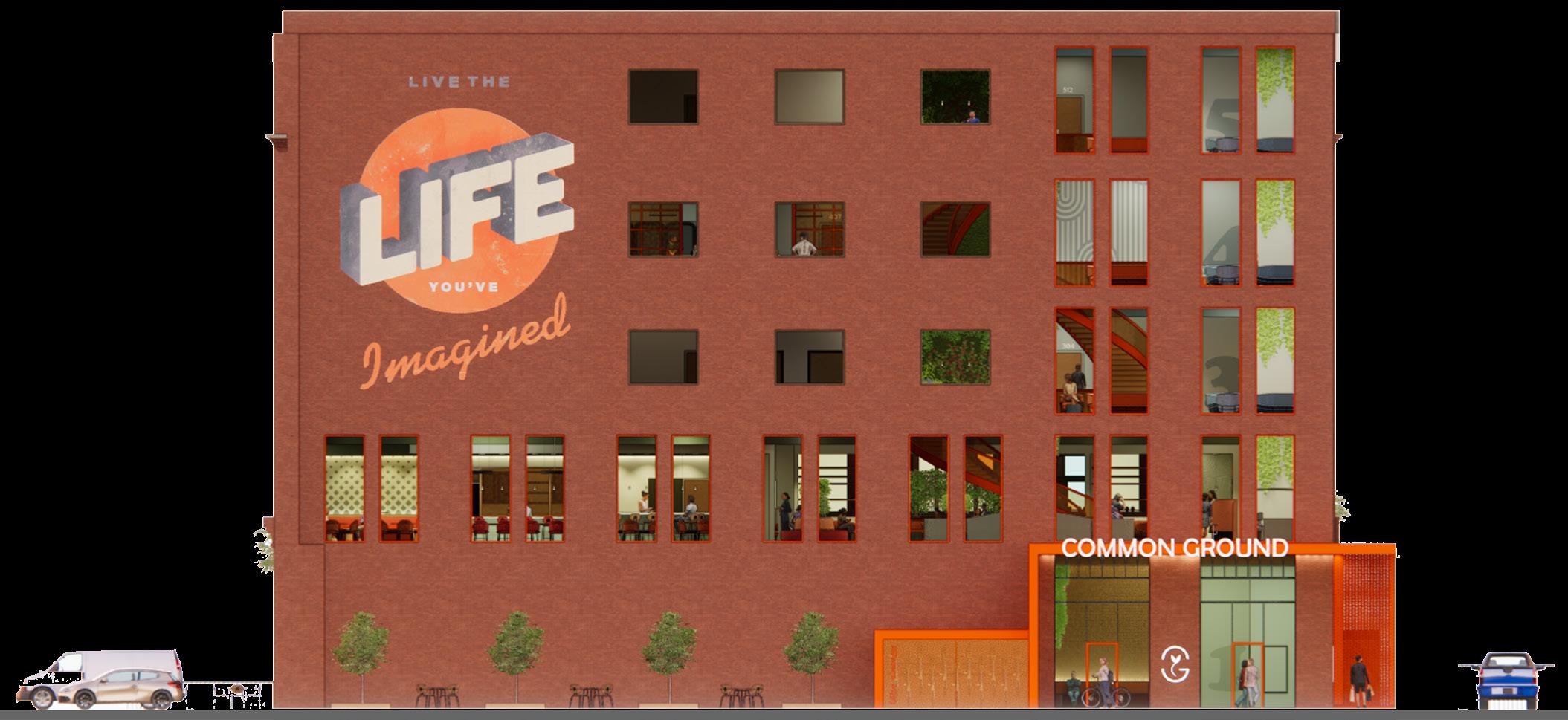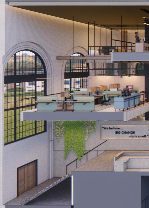 This historic warehouse has been renovated and revitalized to create an accessible and energetic residence, through the process of research, precedent, site and user analysis, and programmatic development, this site becomes a beacon of community and support suitable for nourishing the well-being and emotional needs of emerging adults, while taking into account a range
