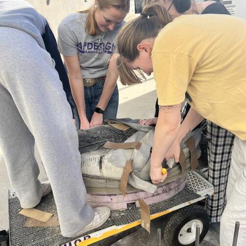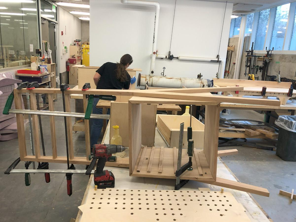 Once all pieces were finished, the class and volunteers helped to install each group’s work into their locations. Each group’s designs are connected through materiality choices, concept, and final color application to tie the whole site together. I am very priviledged to have worked on this project and have a personally legacy which will endure on campus after graduation. To see more of the project please see the link below.