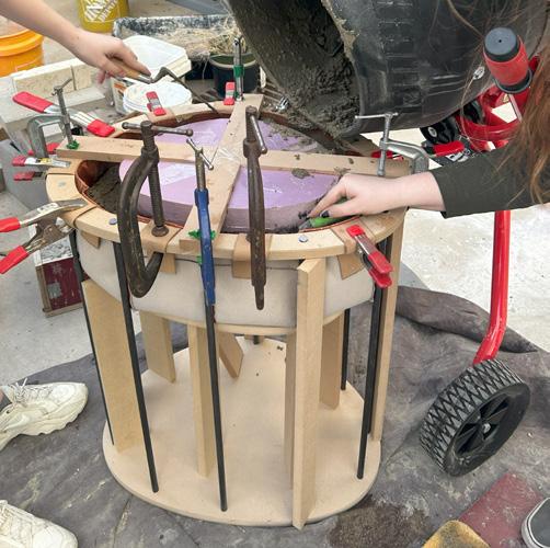 The fabrication process focused on learning new techniques for bending metal, casting concrete, creating variation in textures, and refining metal-working and wood-working skills.