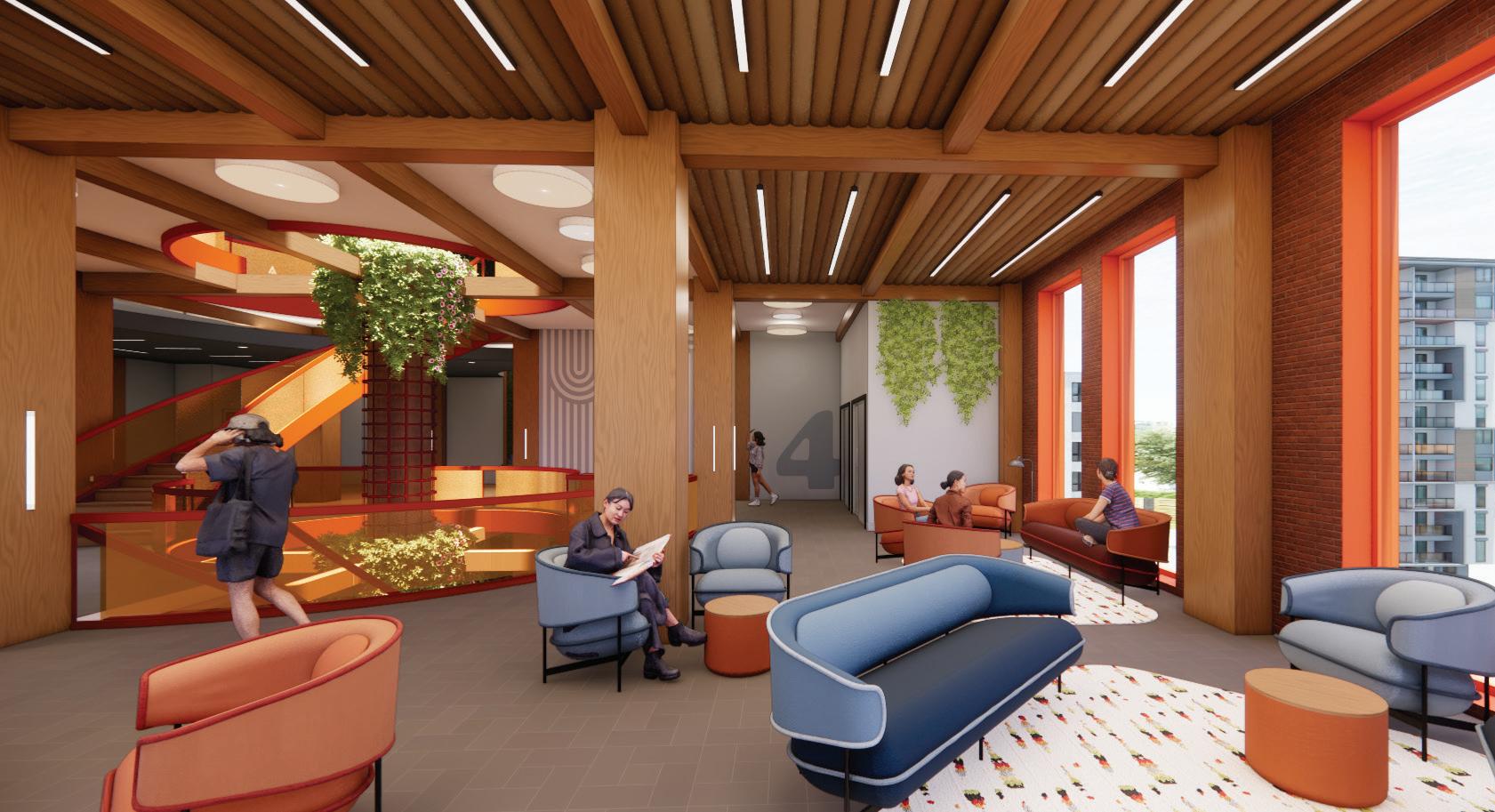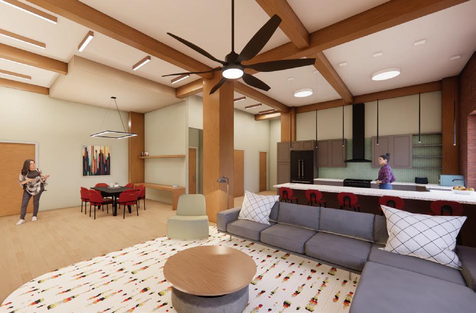 This historic warehouse has been renovated and revitalized to create an accessible and energetic residential building, through the process of research, precedent, site and user analysis, and programmatic development, this site becomes a beacon of community and support suitable for nourishing the well-being and emotional needs of emerging adults, while taking into account a rangeof spatial needs and considerations through evidence based design decisions.