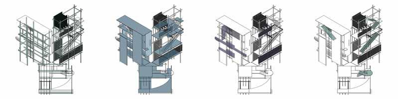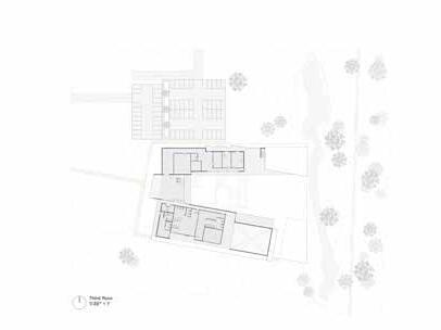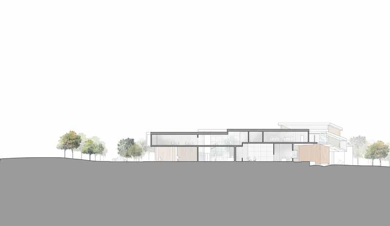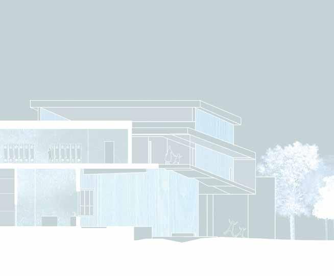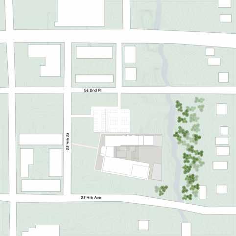 This project is based right at the cusp of where a bustling commercial district turns into quiet residential streets. The building mimics the shape of its site and compliments its surrounding context. The design encourages seamless movement through its entrance to an outdoor performance space and to the nature at its end. Connectivity as a driver for art creation dictated overall elements of this design.