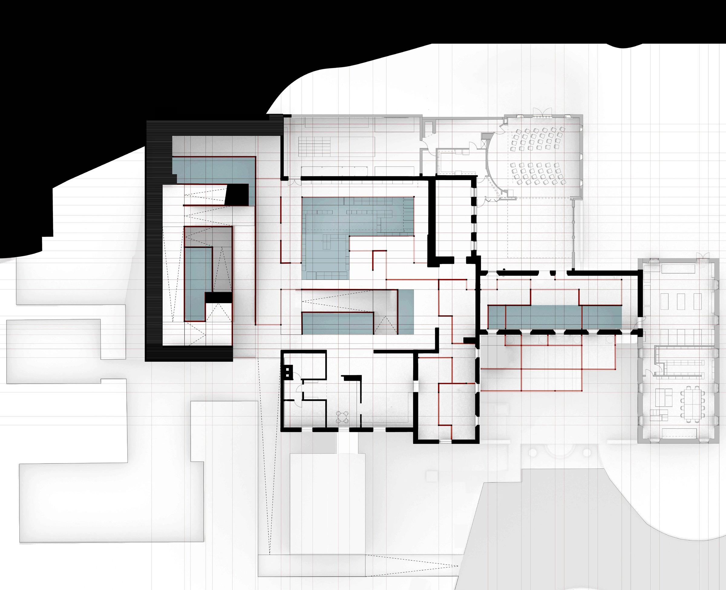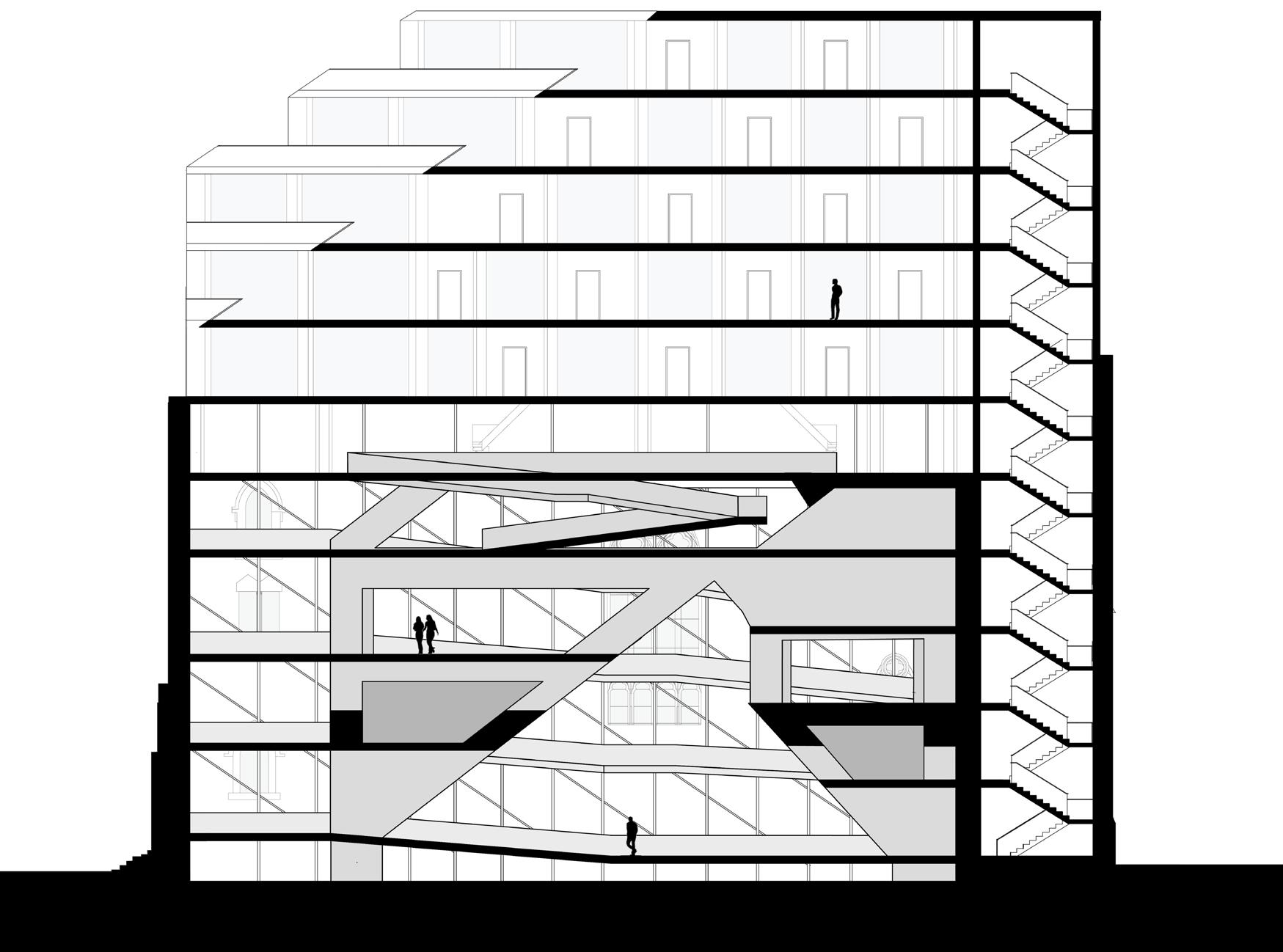 [19] detailed section of intervention showing underground space and stairs for circulation