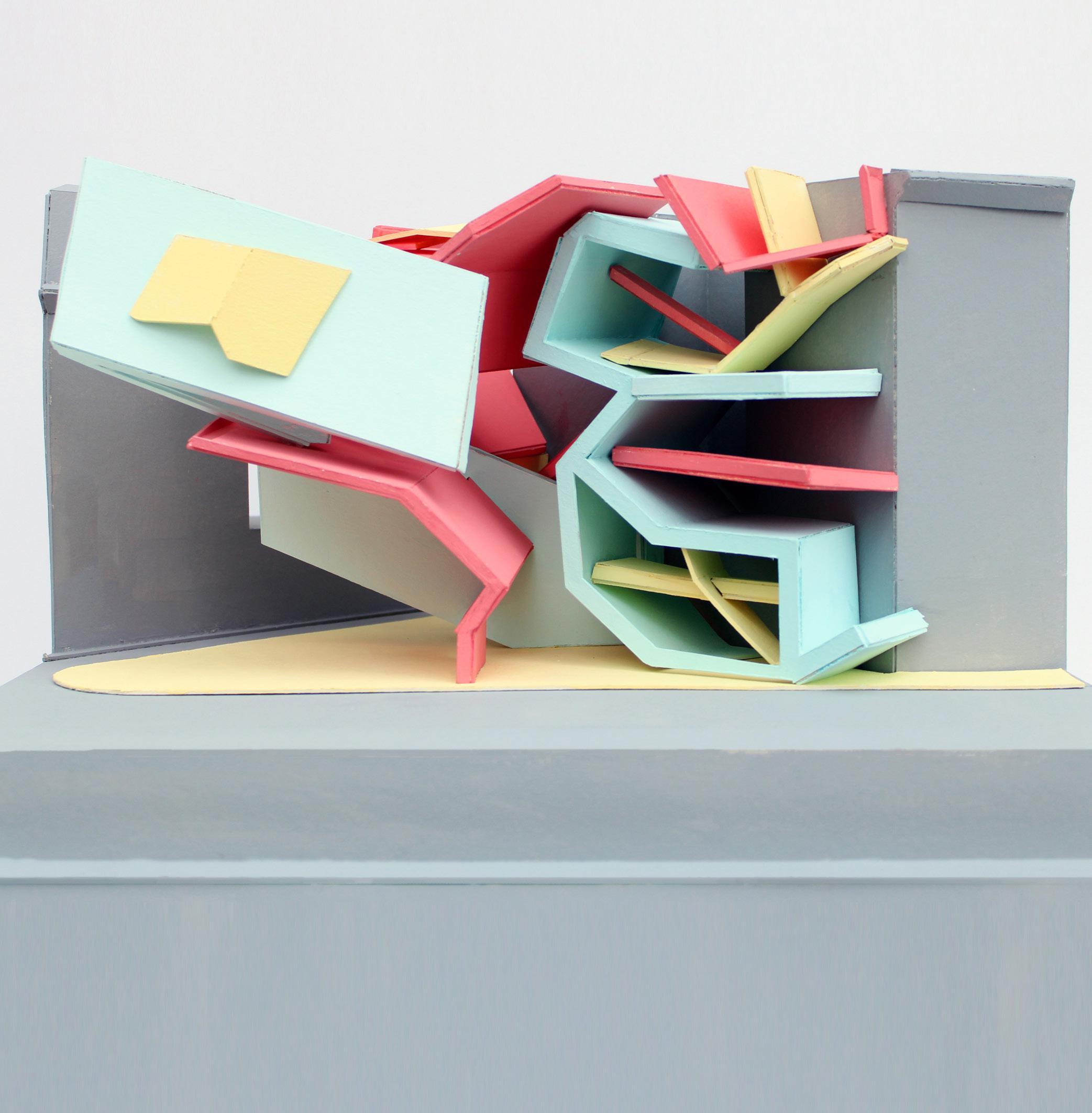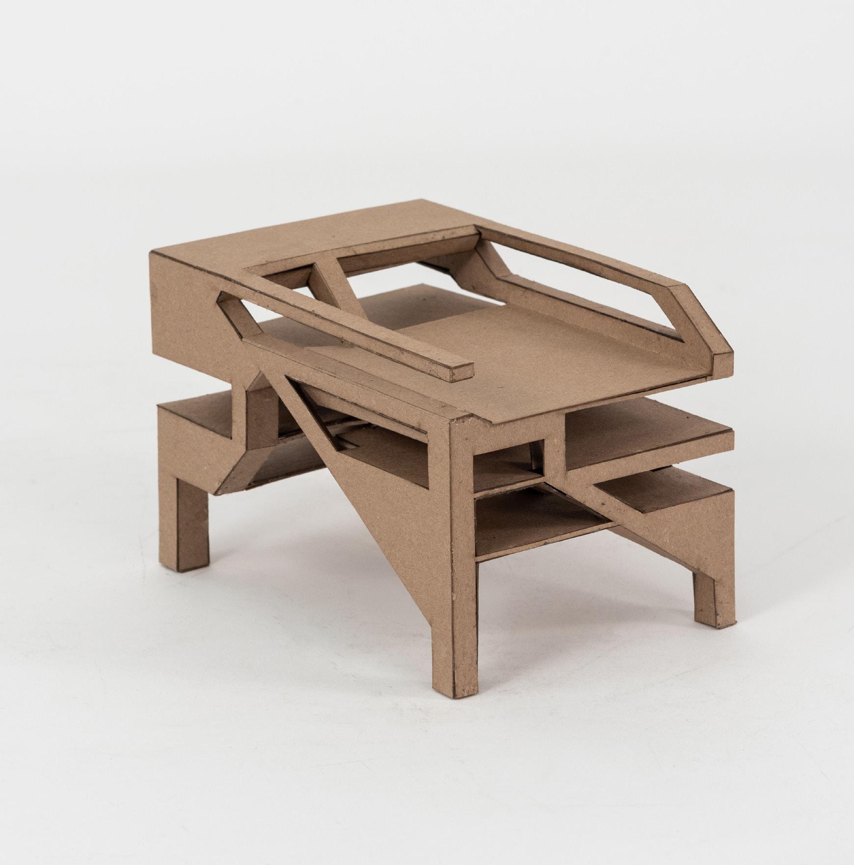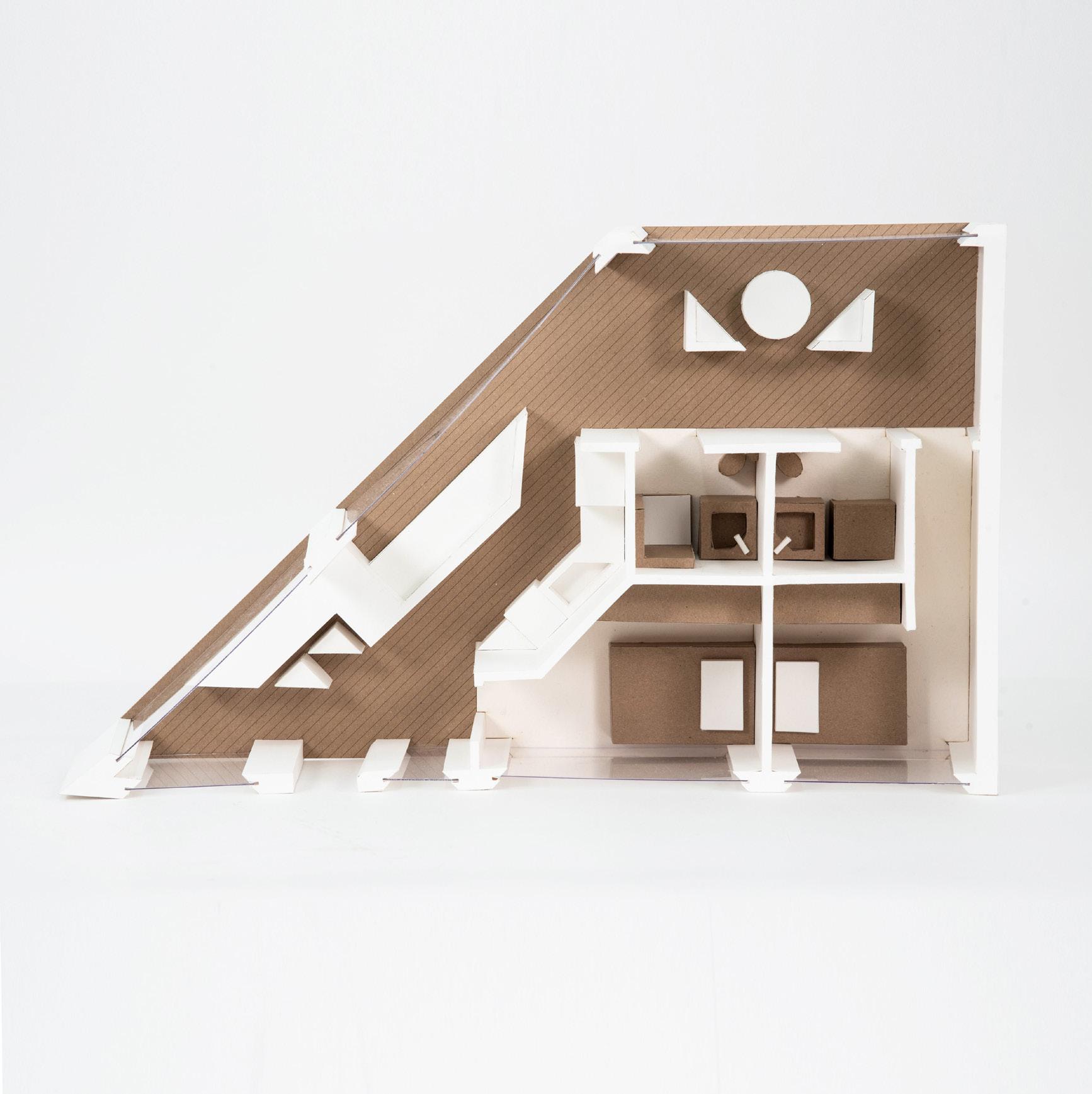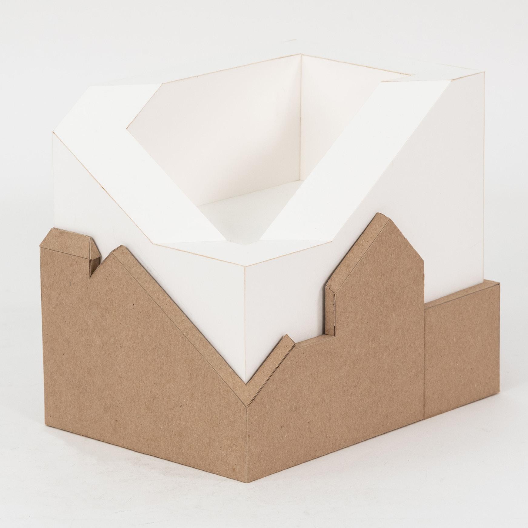 [9 Detail photograph of chunk 1/2” = 1’ physical model constructed of bristol paper