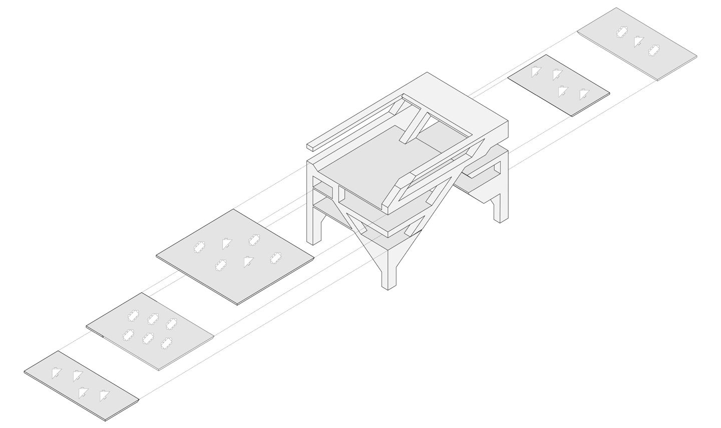 [24] physical joint model which slides apart on the x-axis and y-axis to reveal space.