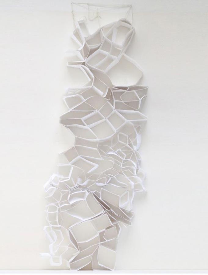 [13] Paper grid model hung to wall to display compression and extenuation
