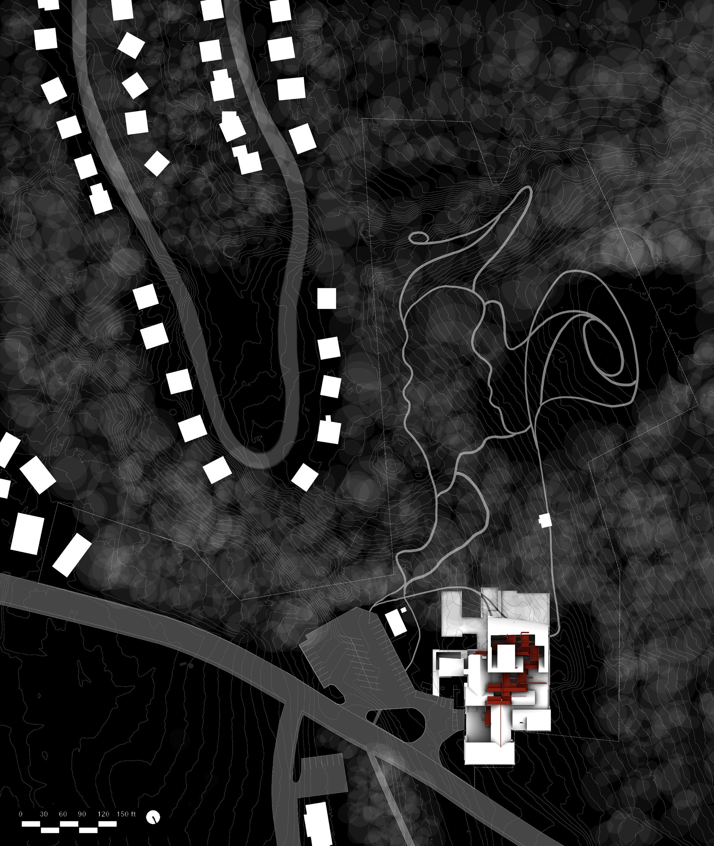 Adam DayemA kindergarten for ecological disaster. One which allows students to realize that civilization is not something that exists outside of wildness and that nature and wildness are both cultural constructs. This kindergarten is without corridors and acts as a Palladian villa in terms of circulation. All accidental encounters that occur moving through the spaces cause friction and threaten the way we live as a society. Rather than eradicating the social experience, this kindergarten encourages no peace, no security, and no segregation. Perforations in the façade allow not only for an immediate engagement with nature but also for other species to inhabit the kindergarten. This kindergarten is set back into the post-industrial worlds romanticized definition of nature but looks out on the inherent beauty but ugly reality of a manufactured landscape. ‘Civilized Wildness’, an off-grid project, allows the future generation to realize that they are a part of nature too.
