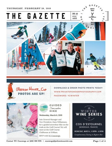 Wednesday, March 6, 2019 Join General Manager and Vice President, Hans Williamson, for a guided snowshoe hike on the trails at the Golf Course! We will meet at the Golf Course Clubhouse at 9:00am. RSVP with YC Concierge. Contact Y C Concierge at (406) 995-7370