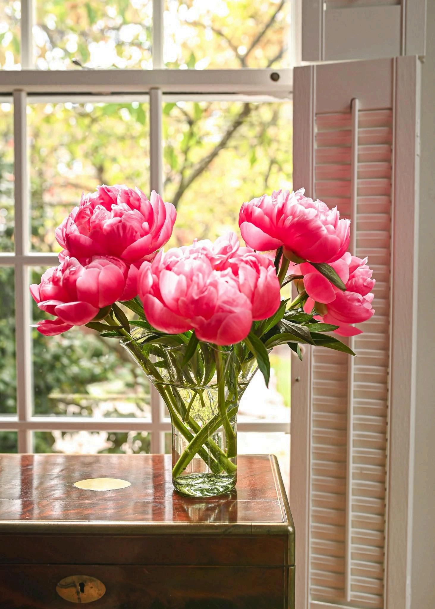 Of course you have to go with pink! Find any pink flowers that you can this time of year and if they are scarce, go with white and green (even Baby’s Breath will work great) We would arrange a Lettuce Leaf Vase and place that on the buffet.