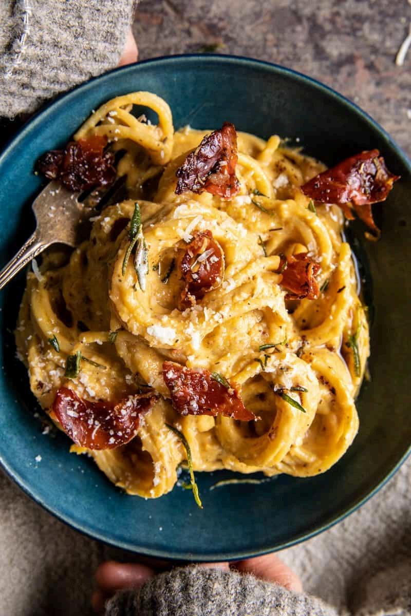 For the main dinner course, we’re serving Modern Proper’s shaved brussels sprout salad (we can’t stop eating the creamy maple dressing) and then we’re going all out with Half Baked Harvest’s creamy roasted garlic and butternut squash pasta Decadent is the only word to describe it. We’re definitely picking up some crusty bread from our favorite bakery to sop up the extra sauce. You know we love a pie around here, so we’re making our favorite apple pie (from the Joy of Cooking cookbook) to complete the theme