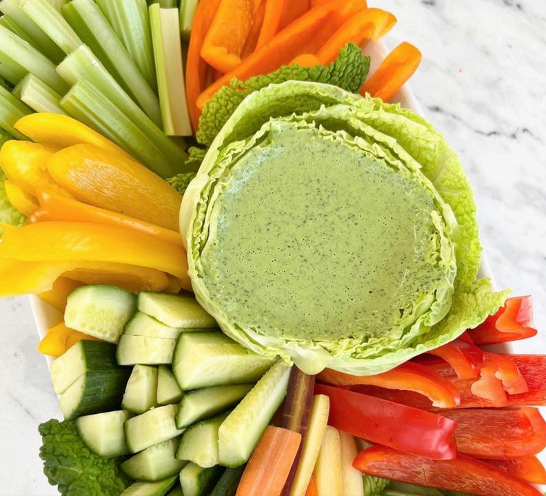 cut veggies with green goddess dip