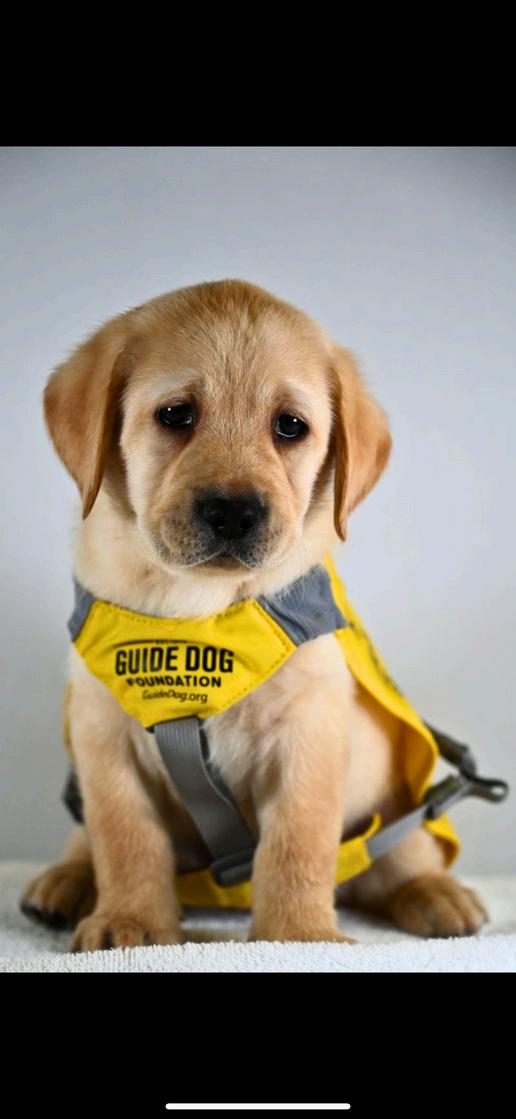 Ally's Statement: "I first heard about the Guide Dog Foundation puppy raising program through my older sister who went to UGA UGA has lots of puppy raisers so she joined the program through the school and encouraged me to do it as well Luce is the first service dog I've trained but I love seeing his growth and I'm so proud of him. The puppy raising program emphasizes obedience training and socialization, so I'm not doing the more advanced guide dog training but it's important for him to have a strong foundation when he goes in for training. Proper socialization is especially important because he needs to be able to adapt to different environments and confidently navigate interactions with people and other animals. My main goal for Luce is for him to be comfortable and confident in whatever situation he may find himself in. Everyone has been really nice about me bringing him here and has tried their best to not distract him (he has a very intense stare so sometimes it's difficult). Some fun facts about Luce, he is very cuddly and will always try to sit on you, he loves cats, one of the cutest things he does at work is when he doesn't want to go to sleep here so he will be fully sitting up closing one eye at a time, trying to stay awake."