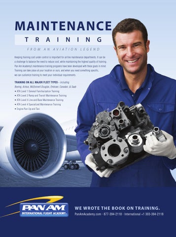 Keeping training It can be f rcostounder m control a nis important a v i for a airline t i omaintenance n l edepartments. g e n d Keeping training cost under control is important for airline maintenance departments. It can be a challenge to balance the need to reduce cost, while maintaining the highest quality of training. a challenge to balance the need to reduce cost, while maintaining the highest quality of training. Pan Am Academy’s maintenance training programsfor have beenmaintenance developed with these goalsIt incan mind. Keeping training cost under control is important airline departments. be Pan Am Academy’s maintenance training programs have been developed with these goals in mind. cantotake place the at your or cost, ours,while and when you need specific, aTraining challenge balance needlocation to reduce maintaining thesomething highest quality of training. Training can take place at your location or ours, and when you need something specific, we can to meet your individual requirements. Pan Amcustomize Academy’straining maintenance training programs have been developed with these goals in mind. we can customize training to meet your individual requirements. Training can take place at your location or ours, and when you need something specific, Training on all major fleeT Types - including we can customize training to meet yourTypes individual requirements. Training on all major fleeT - including Boeing, Airbus, McDonnell Douglas, Embraer, Canadair, & Saab Boeing, Airbus, McDonnell Douglas, Embraer, Canadair, & Saab • ATA Levelon 1 General Familiarization Training- including Training all major fleeT Types • ATA Level 1 General Familiarization Training • ATA Level 2 Ramp and Transit Maintenance Boeing, Airbus, McDonnell Douglas, Embraer,Training Canadair, & Saab • ATA Level 2 Ramp and Transit Maintenance Training Line andFamiliarization Base Maintenance Training • ATA Level 13 General Training • ATA Level 3 Line and Base Maintenance Training Specialized Maintenance Training • ATA Level 24 Ramp and Transit Maintenance Training • ATA Level 4 Specialized Maintenance Training • Engine Run Up and Taxi ATA Level 3 Line and Base Maintenance Training • Engine Run Up and Taxi • ATA Level 4 Specialized Maintenance Training • Engine Run Up and Taxi