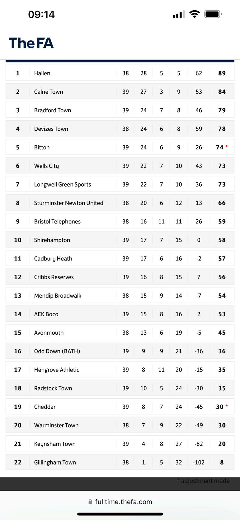 Last Saturdays fantastic win away at Wells City has really put us in a great position for a final push to get the job done. With three home games and a short trip up the road to Cribbs, it’s looking like four points are realistically needed to clinch the title if Calne Town are to take maximum points in all their remaining games