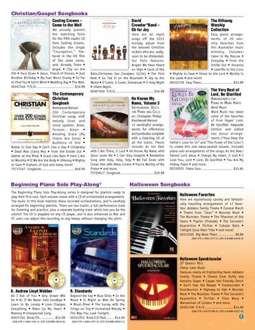 Christian/Gospel Songbooks Casting Crowns – Come to the Well We proudly present the matching folio for the fifth studio CD from Casting Crowns. Includes the single “Courageous,” featured in the hit film of the same name, and: Already There • Angel • City on the Hill • Face Down • Jesus, Friend of Sinners • Just Another Birthday • My Own Worst Enemy • So Far to Find You • Spirit Wind • Wedding Day • The Well. 00307346 P/V/G ���������������������������������������������� $16.99