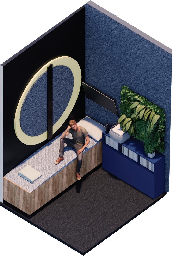 Oasis space influenced by sleep and dreams, creates tranquility and restoration.