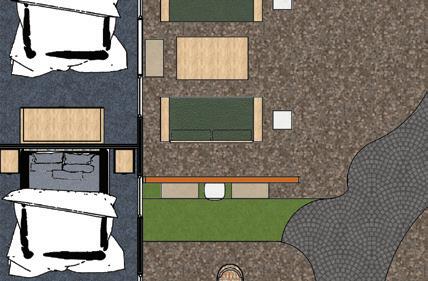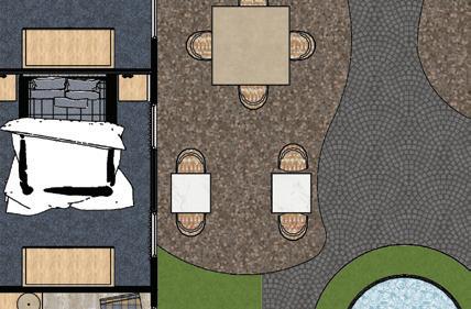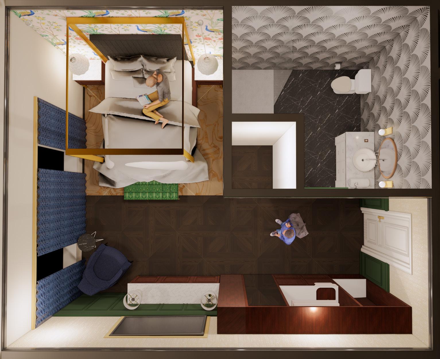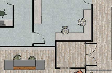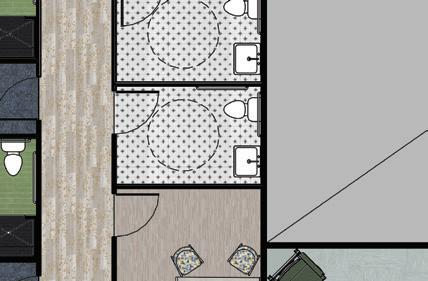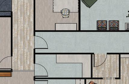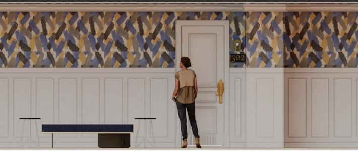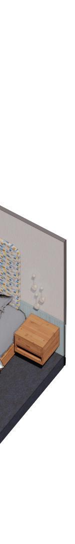 The motif introduces specific distinctions between the furniture pieces to assist residents in navigating their rooms and differentiating each part of the space.