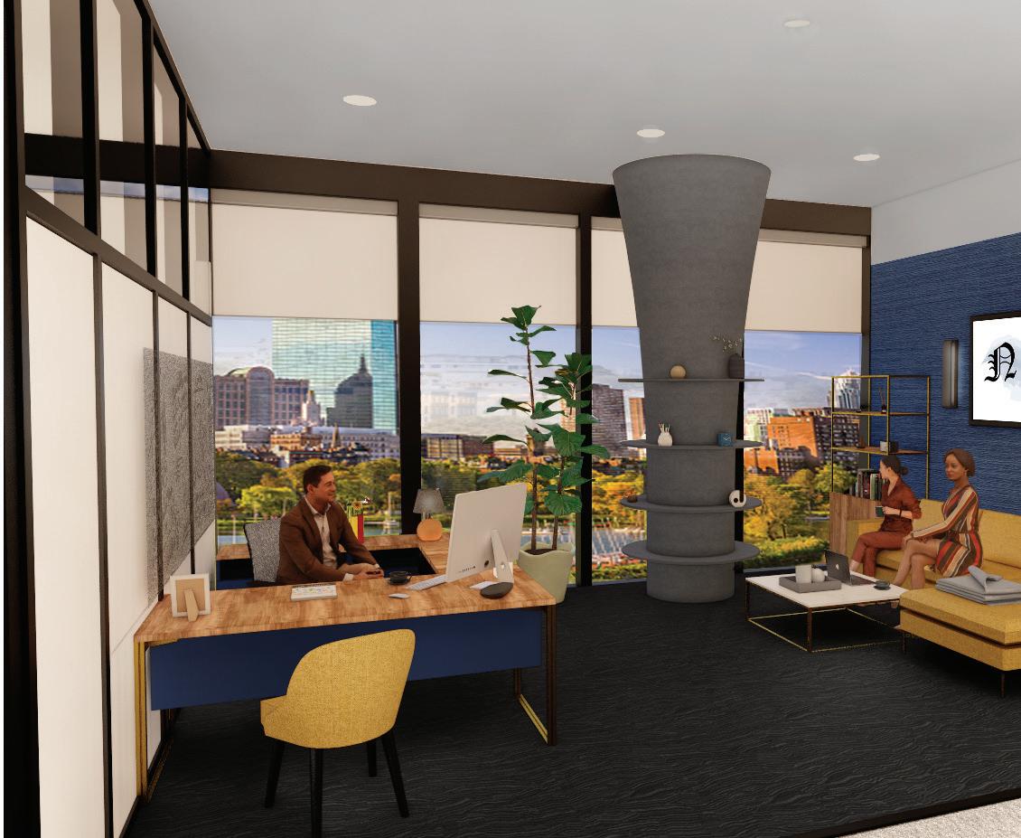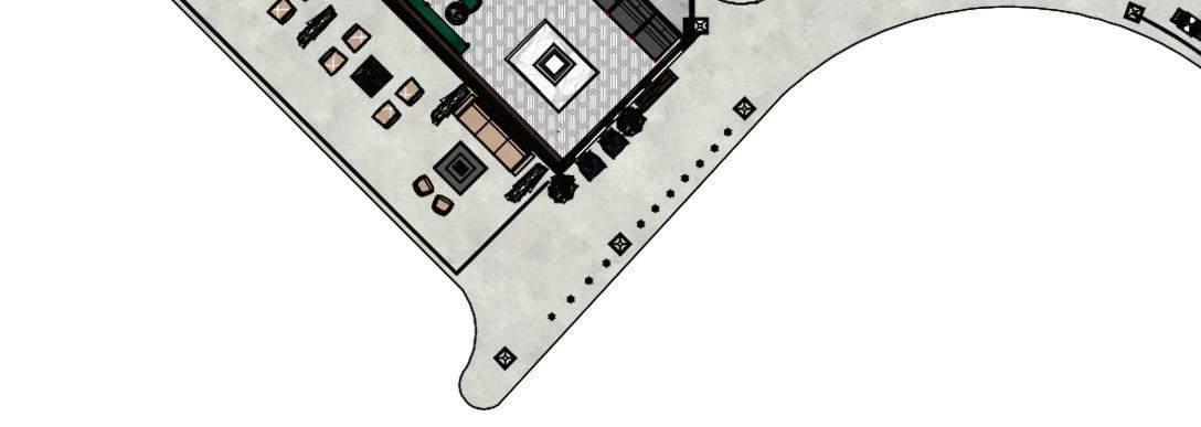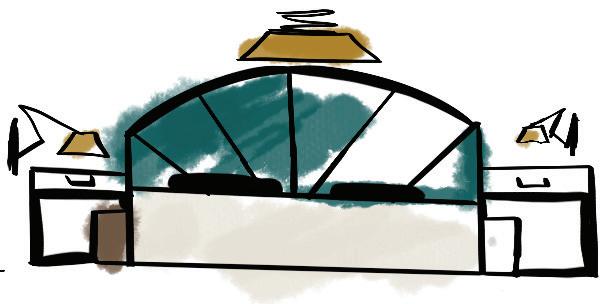 Arc where the column meets the ceiling allows necessary architectural features to be seamlessly woven within the concept for design purposes.