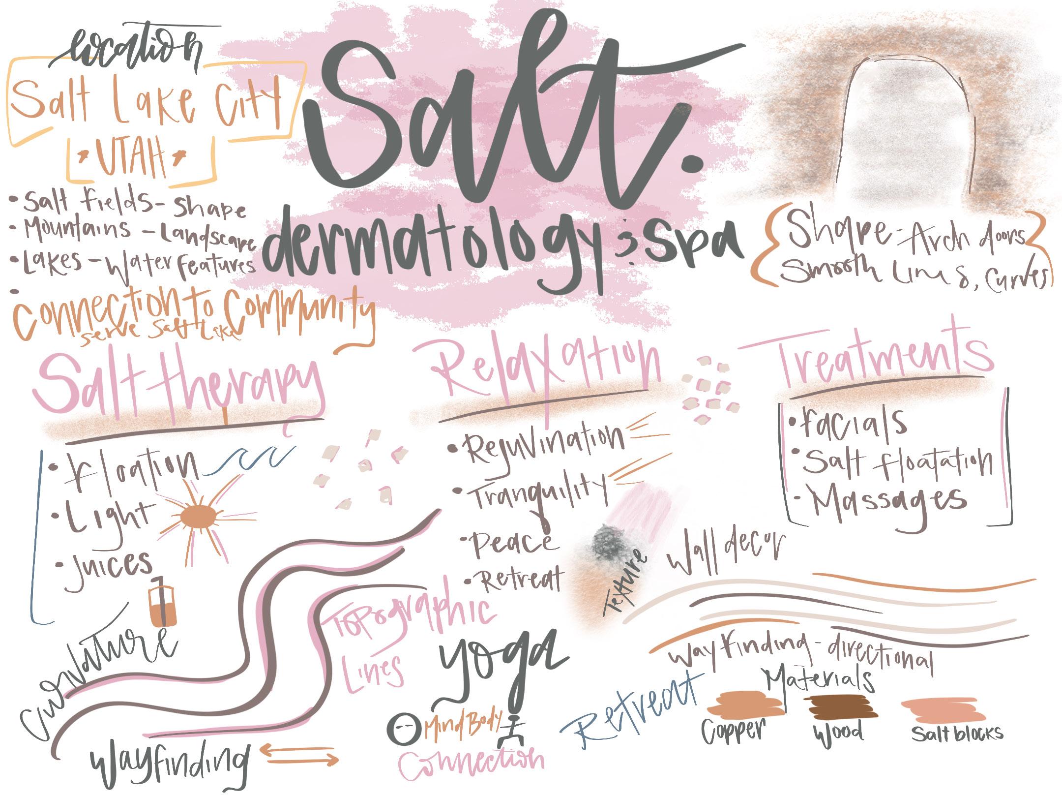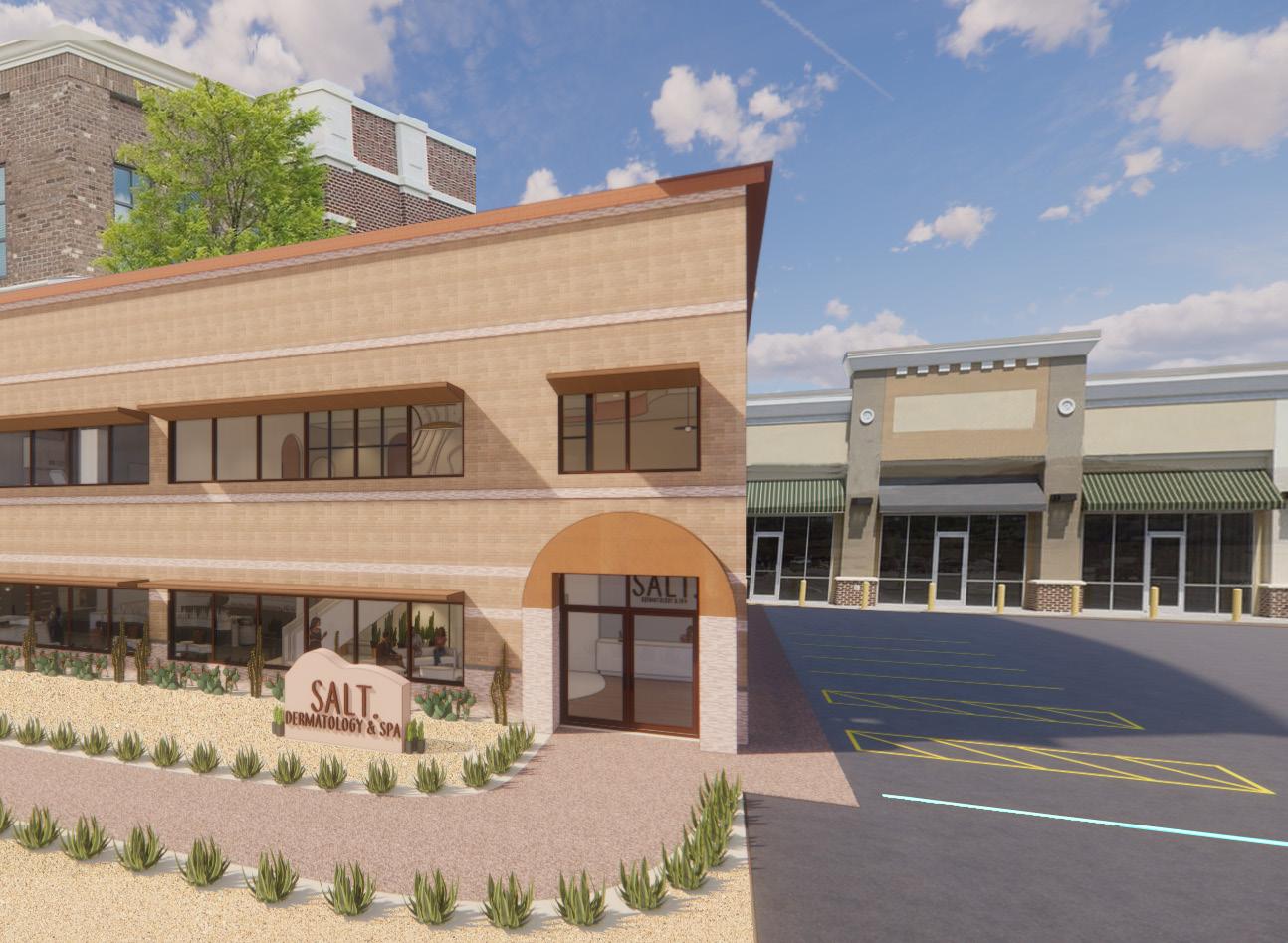 SALT, a dermatology facility and spa, specializes in salt therapy to aid skin regeneration and restoration. The facility helps mental and physical health with the use of salt cave yoga, sensory deprivation tanks, and a salt sauna. Curvature, natural color, and textures recreate the topography and landscapes connected to Utah and the salt plains.
