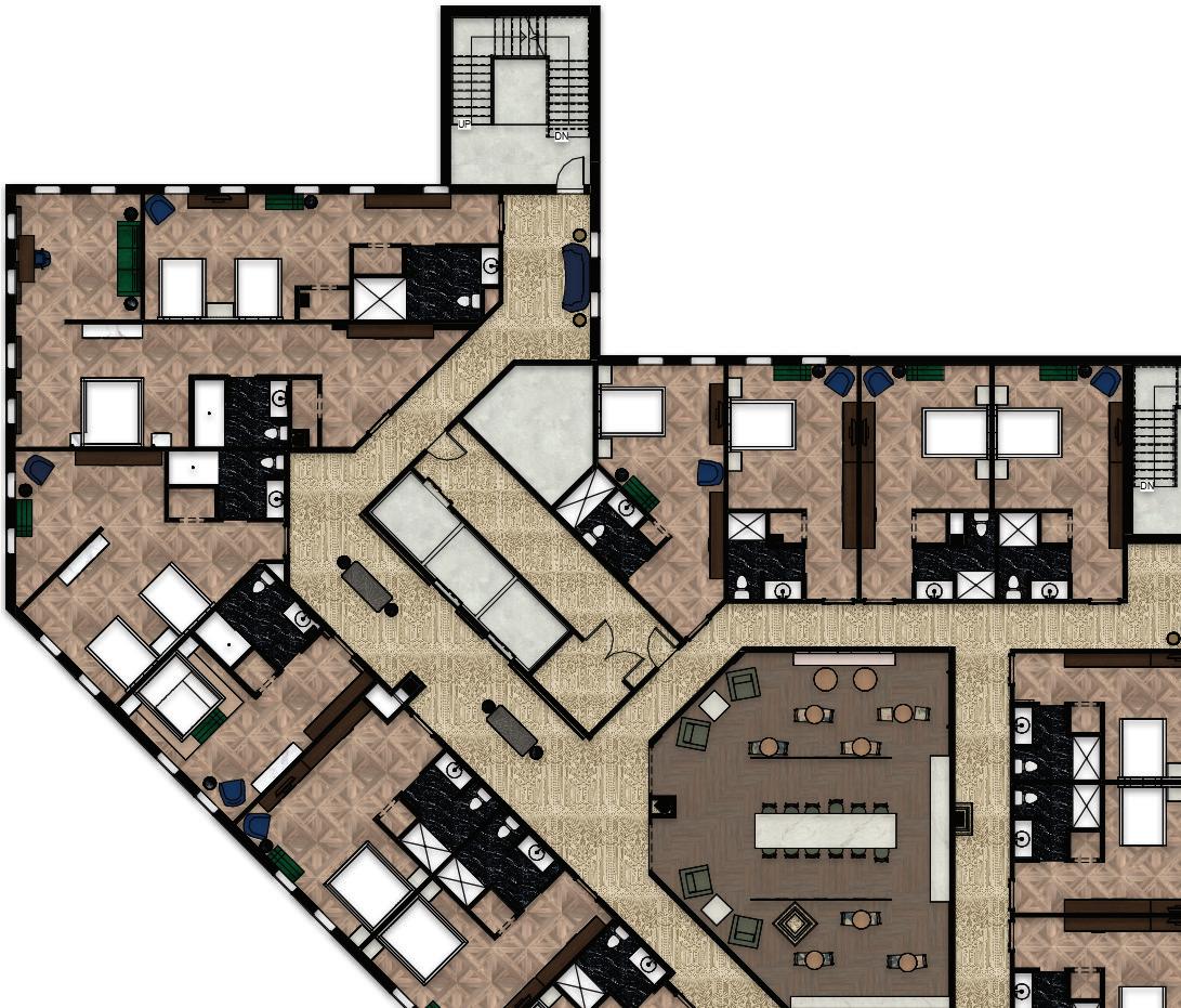 Incorporating popular culture from the mid-century era, the Drake uses pieces of the most memorable aspects to specifically brand each space using color association for wayfinding and memory reinforcement. The Drake embodies a home-like environment and encompasses American history reflected in Austin’s culture.