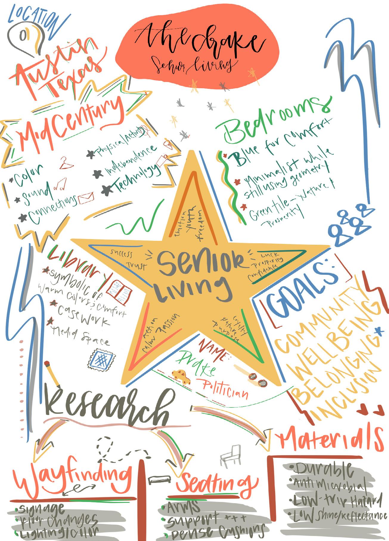 Color theory and symbolism defines each space and creates distinction within the senior space.