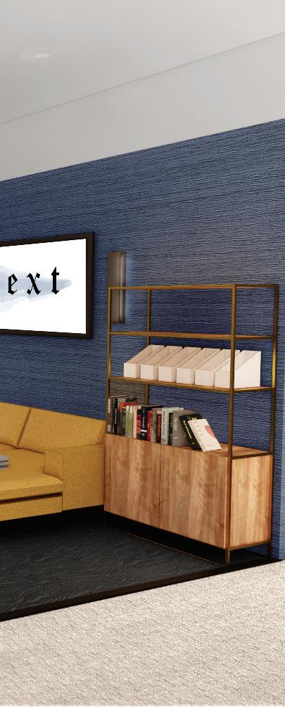 Mahogany shelving space gestures back to the main lobby while also setting the intimate mood & relaxed space.
