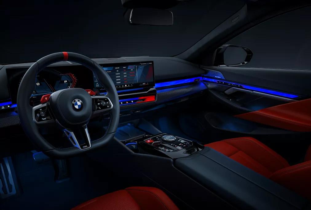 Rauði Start-Stop hnappurinn, BMW stjórnkerfi með M merki, eða M stillingar. M miðstýringin veitir skjótan aðgang að öllum helstu aðgerðum.