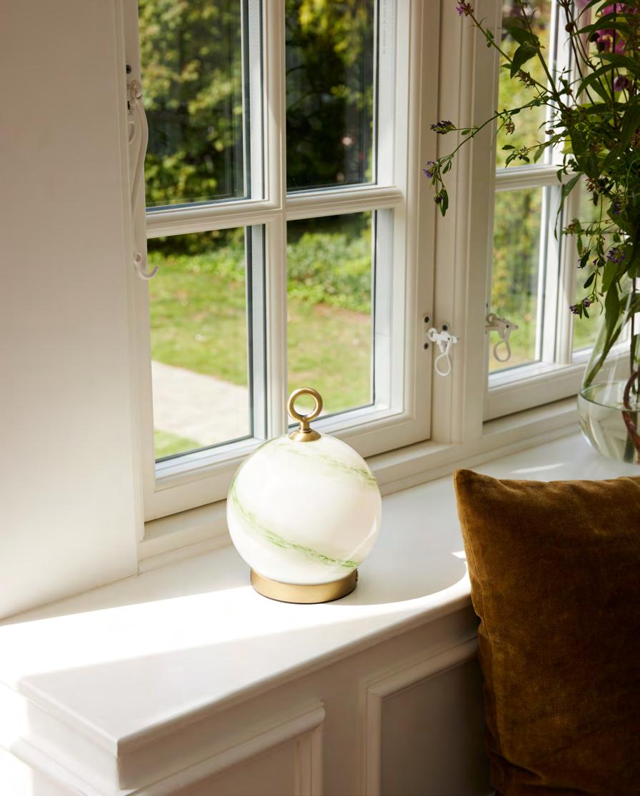 Color: Marble green, brass Light: LED 2,5 Watt, dimmable Battery: 3000 mAh (9 hours)