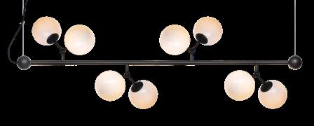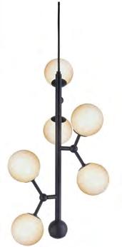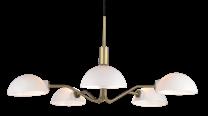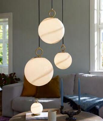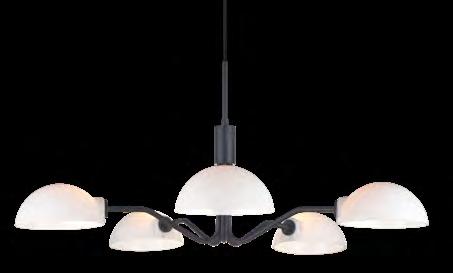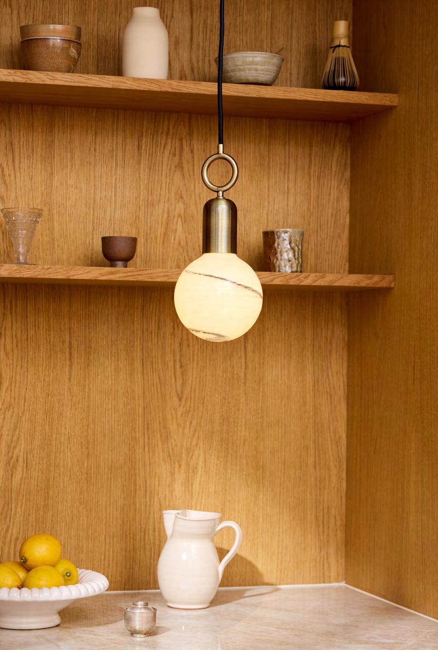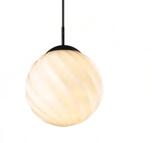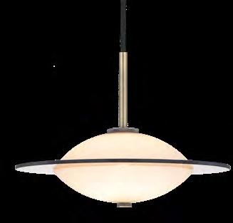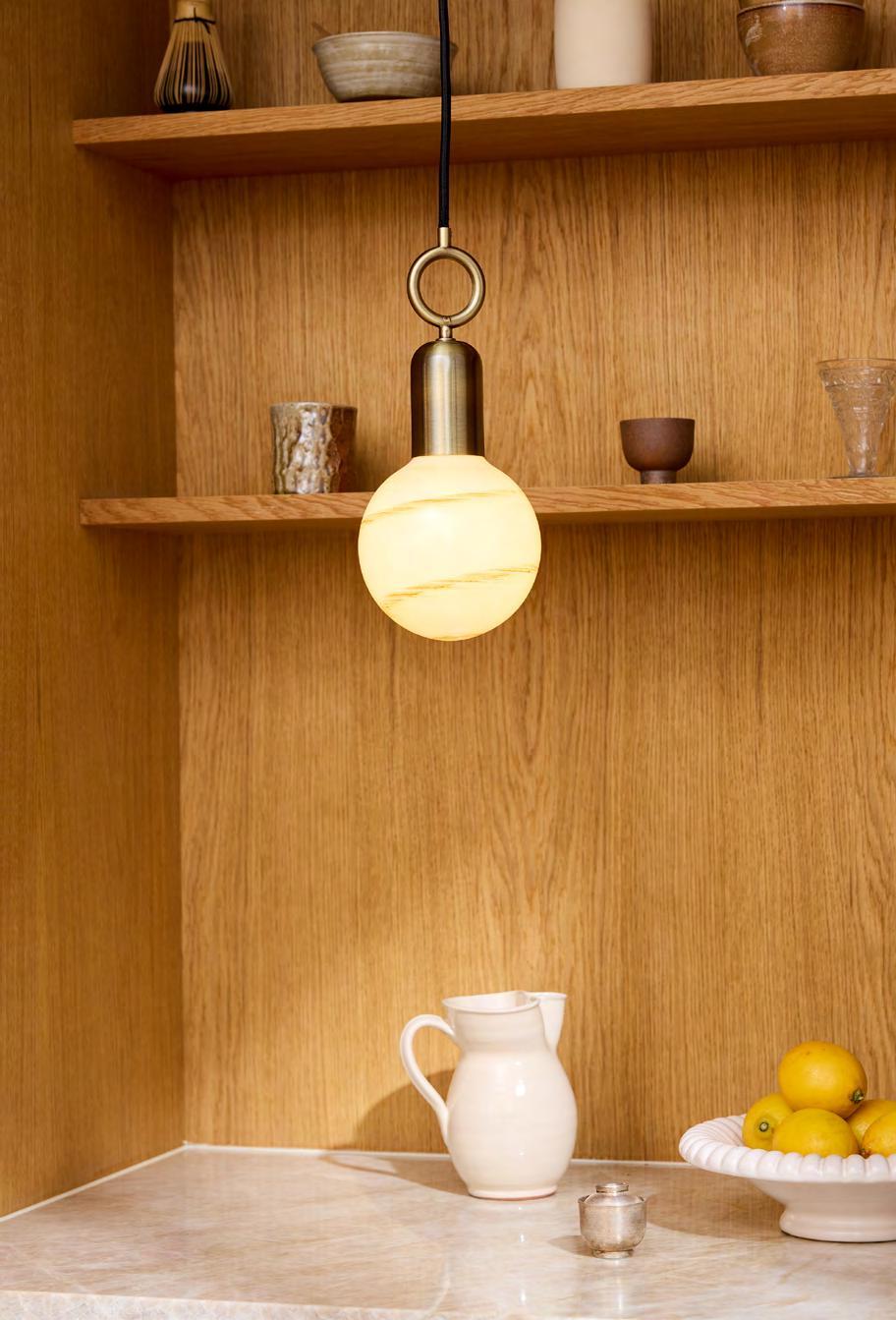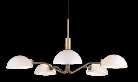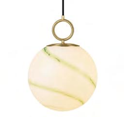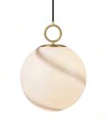 Aesthetic and material research results in this family of lamps, which features an opal glass with marble decoration combined with brass finishes.