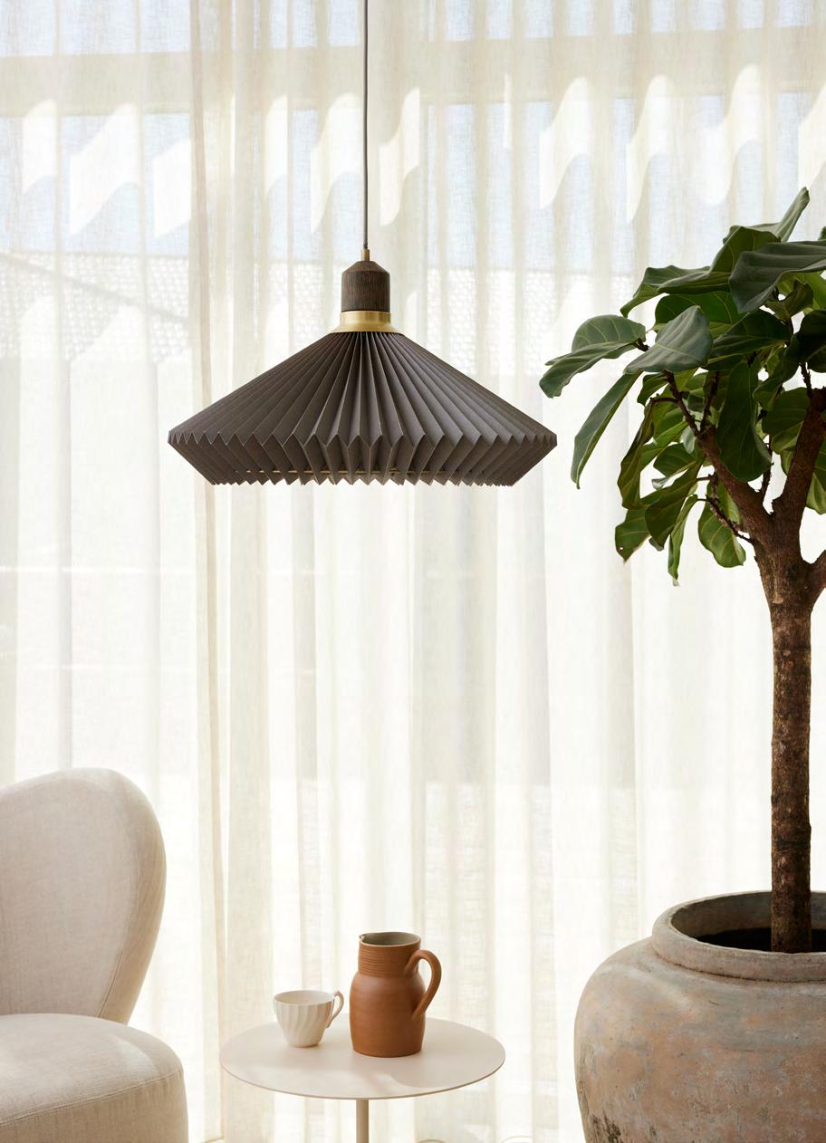 Paris is truly one of those cities where fashion really happens, both in the streets and at home. For this new family of lamps we've taken inspiration from recent trends, where collections are being designed with pleats of dark and natural tones.
