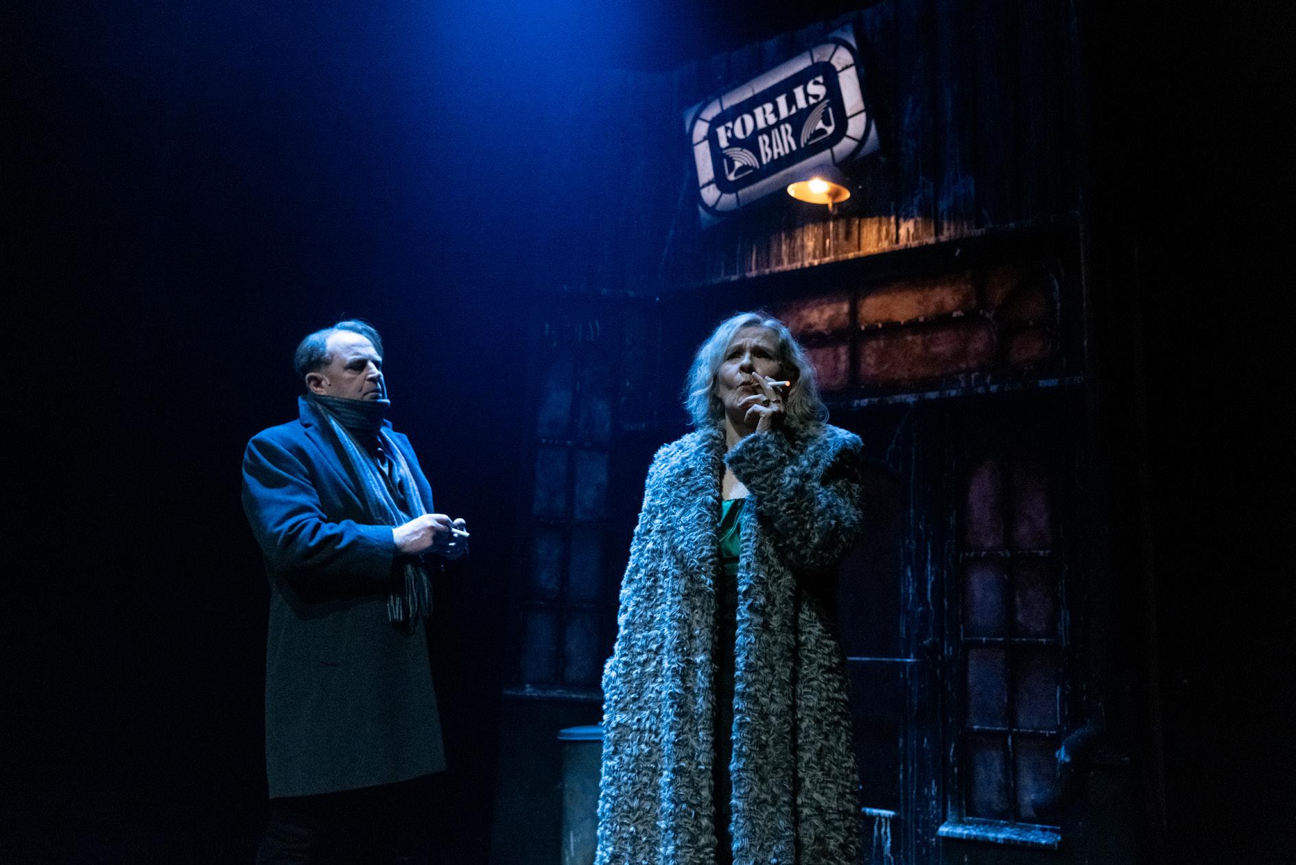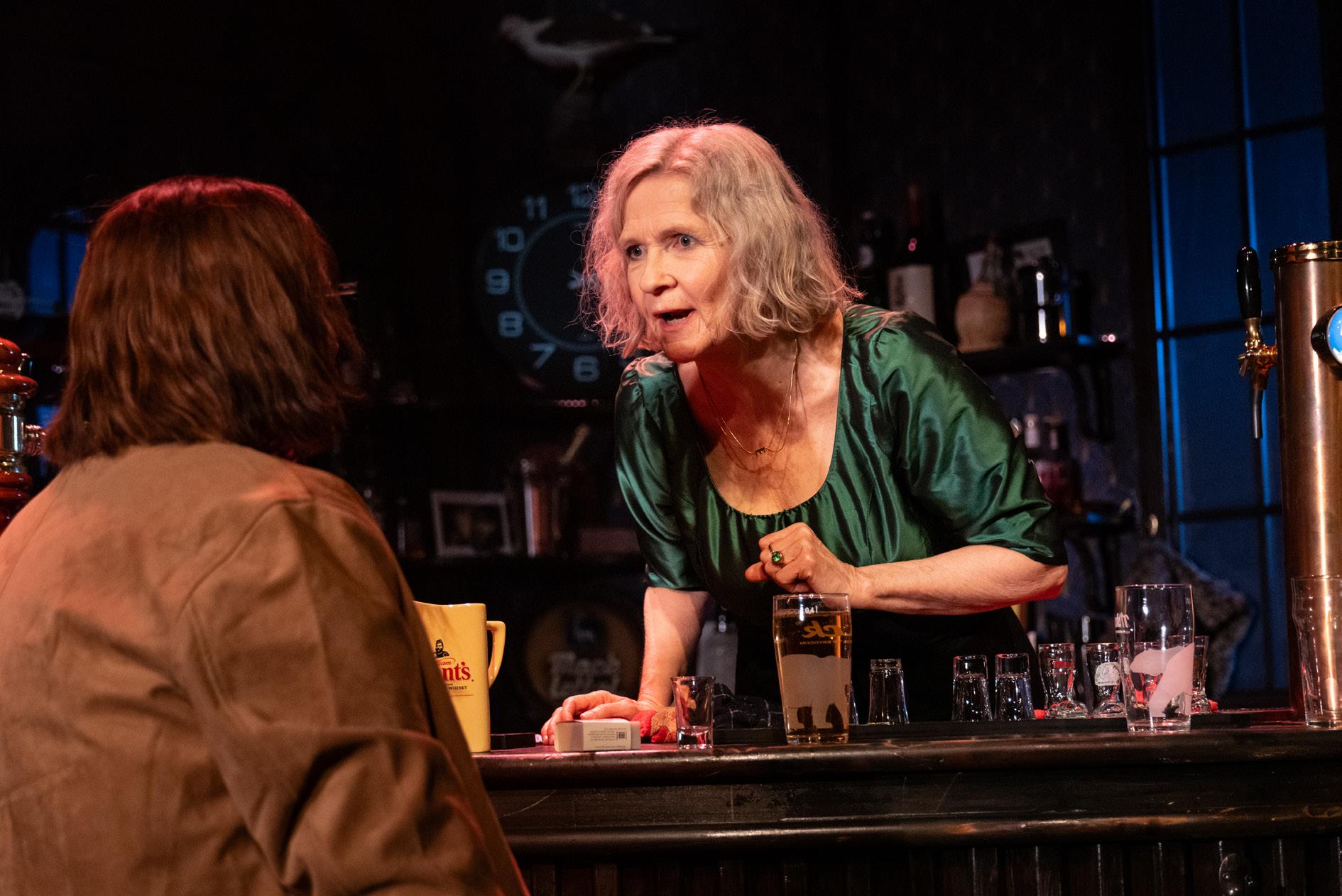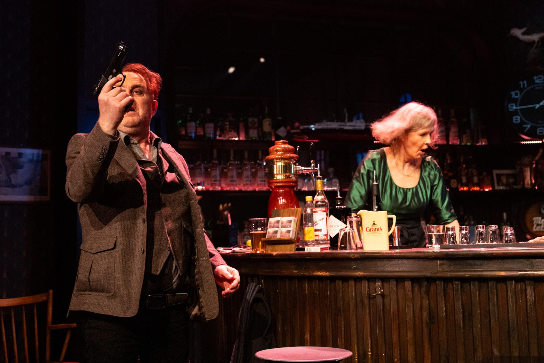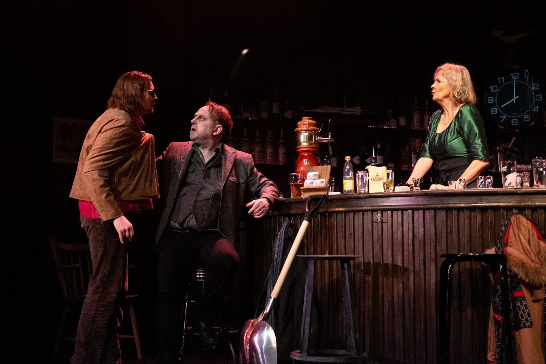 Etter pausen har vi spolt litt tilbake i historien. Dialogen er tilbake like før der første akt avslutta. Gjengen i baren diskuterer. Jørgen tar fram pistolen. Men han legger den vekk når han får beskjed om det.