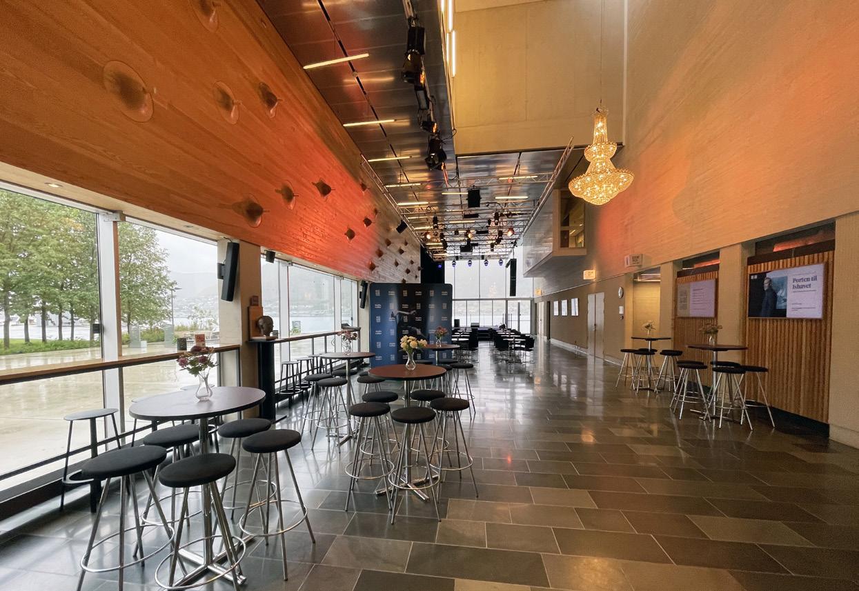 I foajéen er det en bar der du kan kjøpe drikkevarer som kaffe og brus. Det er lov å ta drikken med seg inn i salen.
