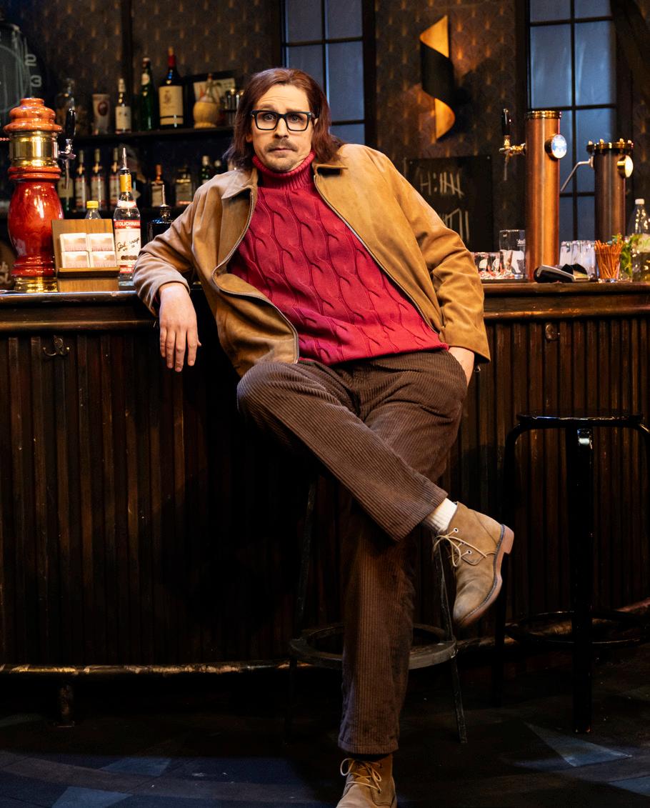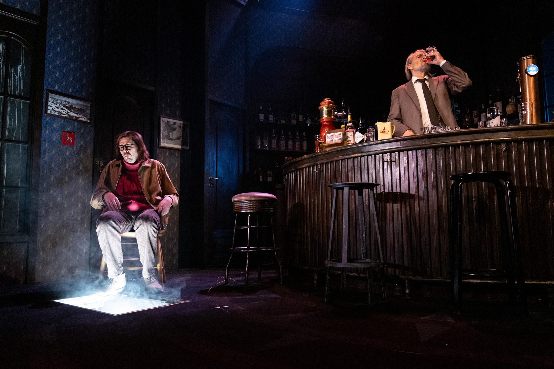 Jørgen kommer inn fra kjelleren og setter seg i baren allerede før forestillinga starter på ordentlig. Han drikker og skraper skrapelodd. Musikk kommer på, lyset i salen senkes, og forestillinga er i gang.